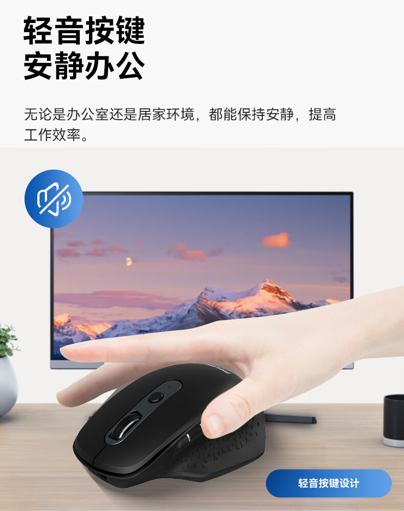 飞利浦(PHILIPS)MX930无线蓝牙鼠标 充电款轻音双模办公鼠标人体工学DPI五档苹果mac电脑笔记本多设备兼容企业采购 MX930黑色【2.4G无线+蓝牙双模】