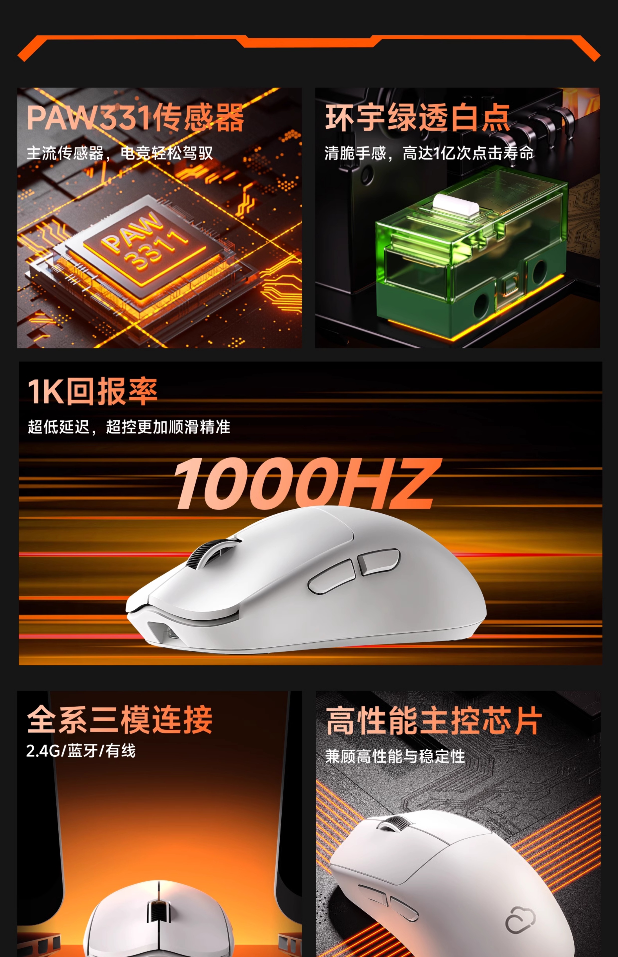 前行者X23pro无线鼠标电竞游戏蓝牙三模1K回报率无孔轻量化设计全键宏编程超长续航笔记本电脑ipad外设 X23Pro白色(三模连接-800mAh电池)