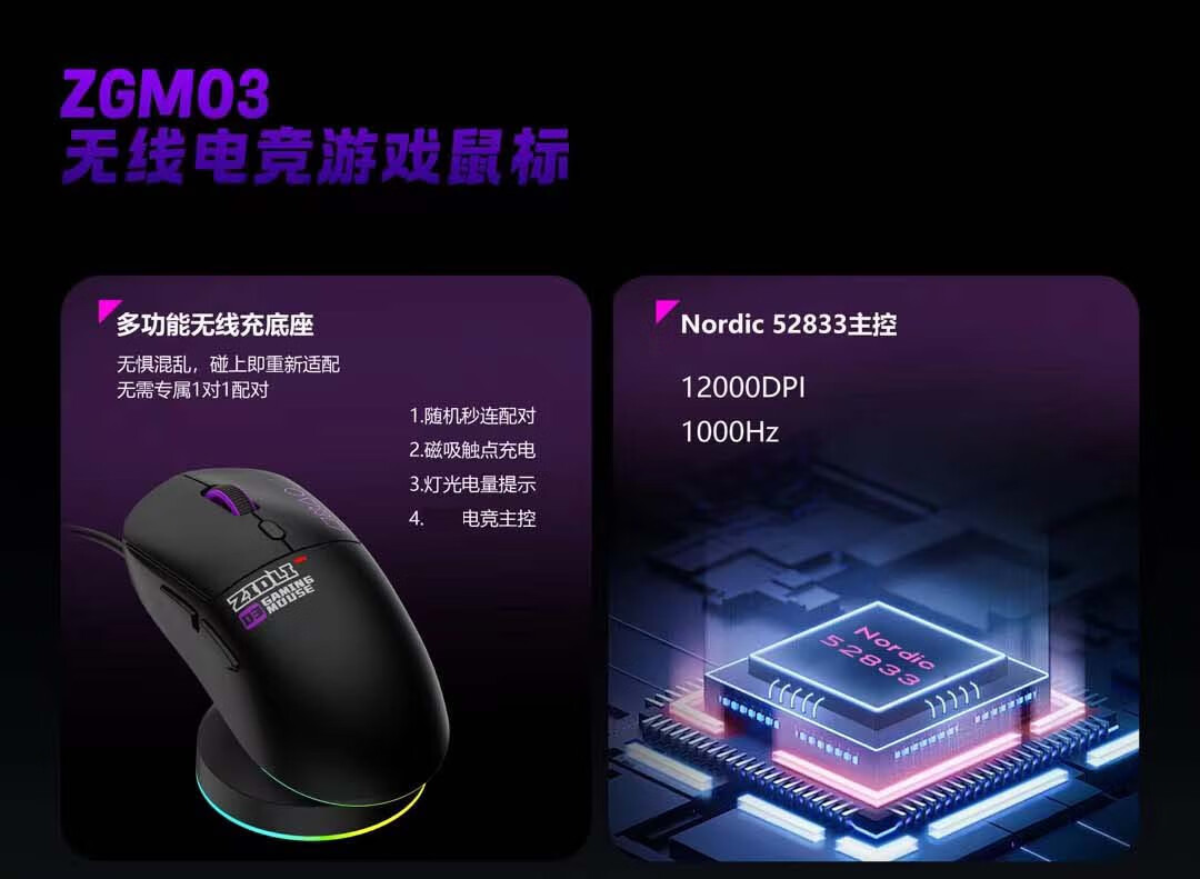 Magnetic Power (ZIDLI) E-Sports Gaming Mouse Home Desktop Computer Notebook Wireless Mouse LOL Chicken CF Business Office Mechanical Mouse Cool Luminous Internet Cafe Internet Cafe Special ZM300-W Wireless Mouse Black with Charging Base