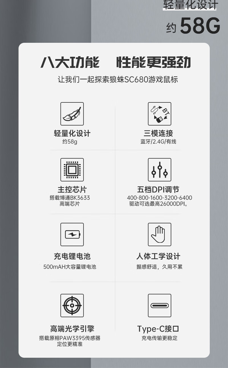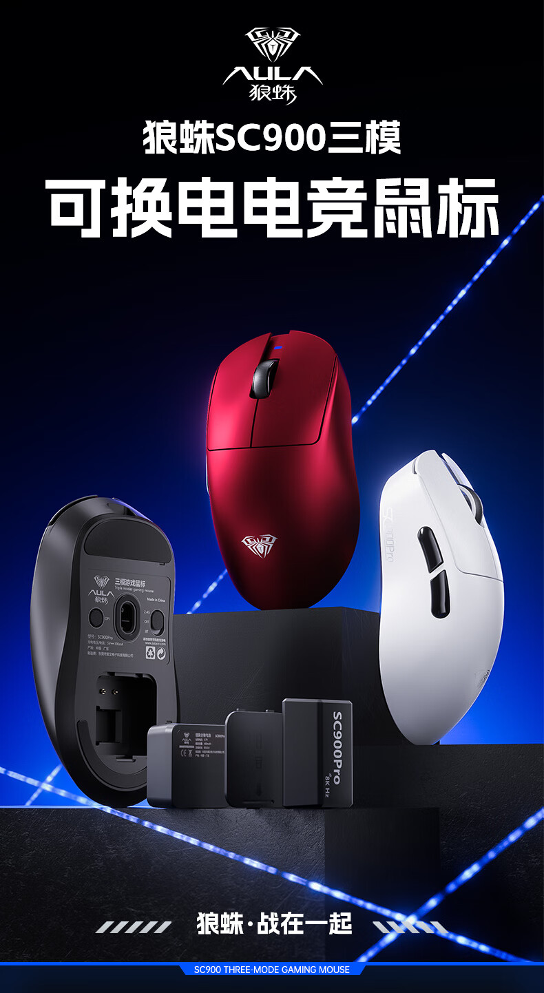 Wolf Spider (AULA) SC900Pro wireless three-mode lightweight gaming mouse wired/2.4G/Bluetooth 8K return rate e-sports long battery life PAW3395 SC900PRO-shell powder dual battery wired/wireless dual 8K