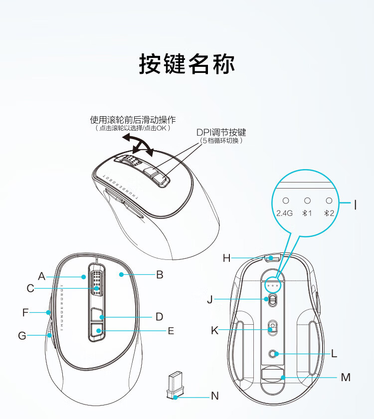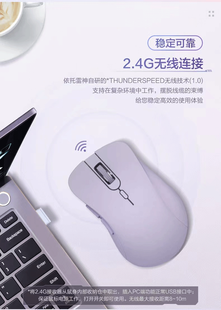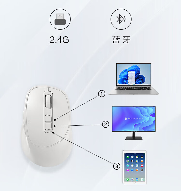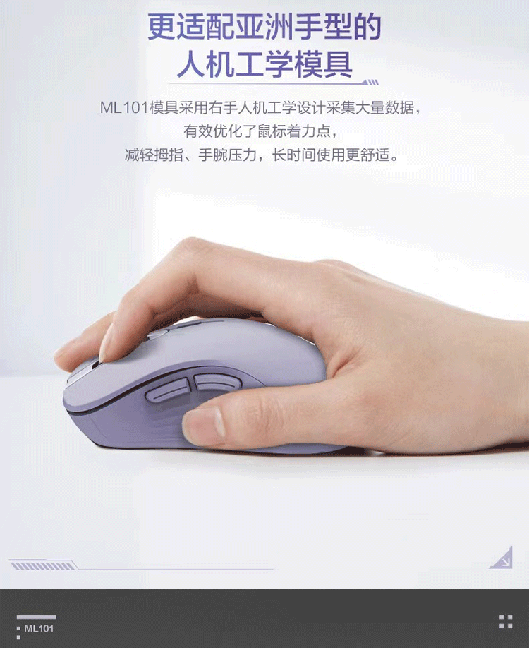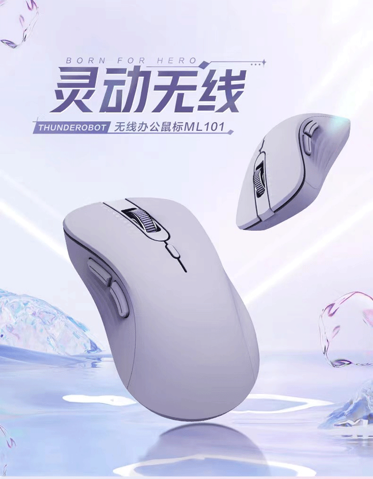 ThundeRobot low-light Bluetooth dual-mode wireless mouse ML103 ML101 2.4G Bluetooth e-sports home office long-life soft mouse low-light dual-mode ML103 lavender purple