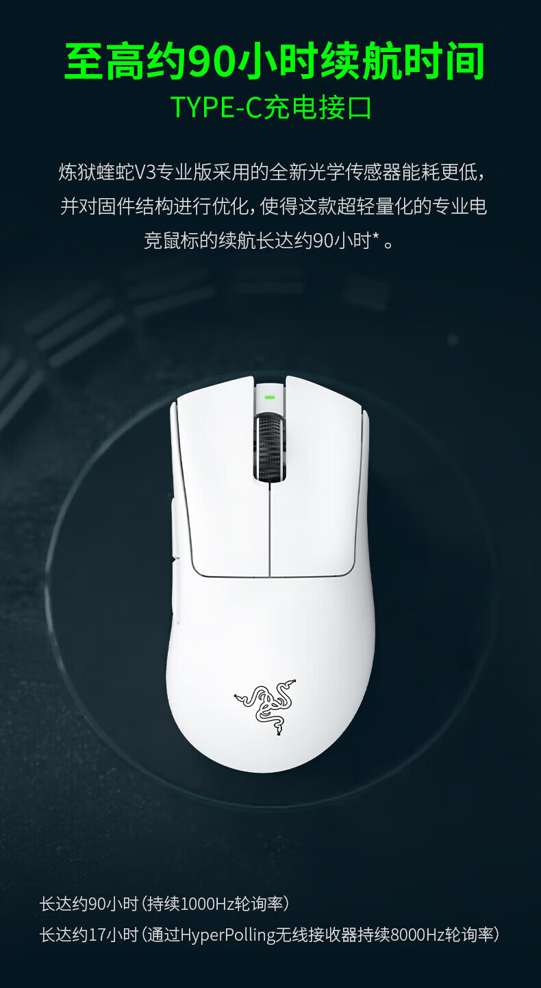 Razer Viper v3 version pro sans fil 2,4 G souris légère de jeu e-sports souris ergonomique à rehaussement du dos souris environ 64 grammes souris sans fil Viper V3 version professionnelle - blanche