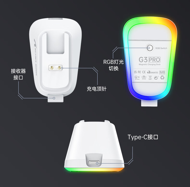 Attack Shark/Attack Shark G3PRO souris légère e-sports à trois modes Bluetooth sans fil droitier effet d'éclairage RVB CSGO poulet LOL e-sports macro ordinateur portable de bureau universel avec base Attack Shark G3pro blanc
