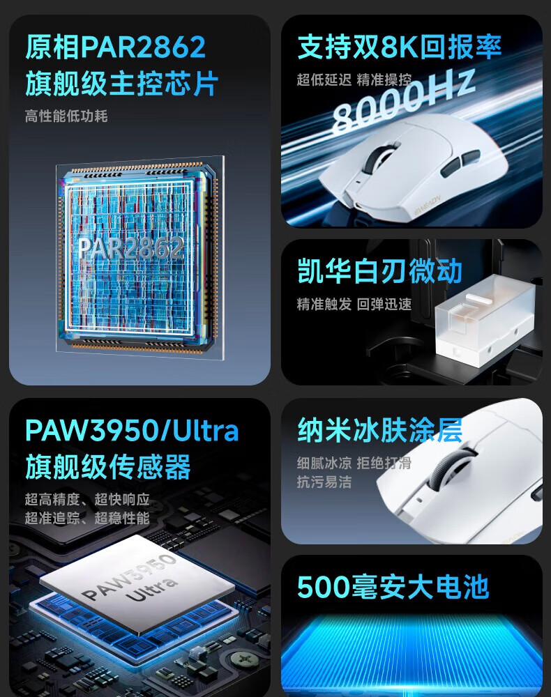 Forerunner S9/S9Pro/Ultra wireless mouse three-mode lightweight design PAW3950 sensor 3395 chip dual 8K return low latency game office general high appearance S9Pro Titanium Sky Silver-3395 8K return-dual receiver
