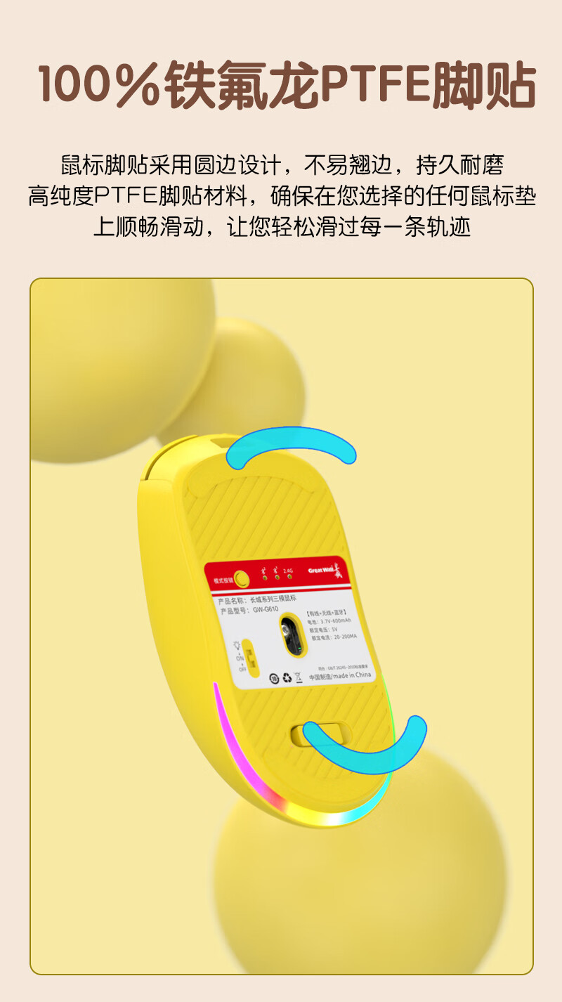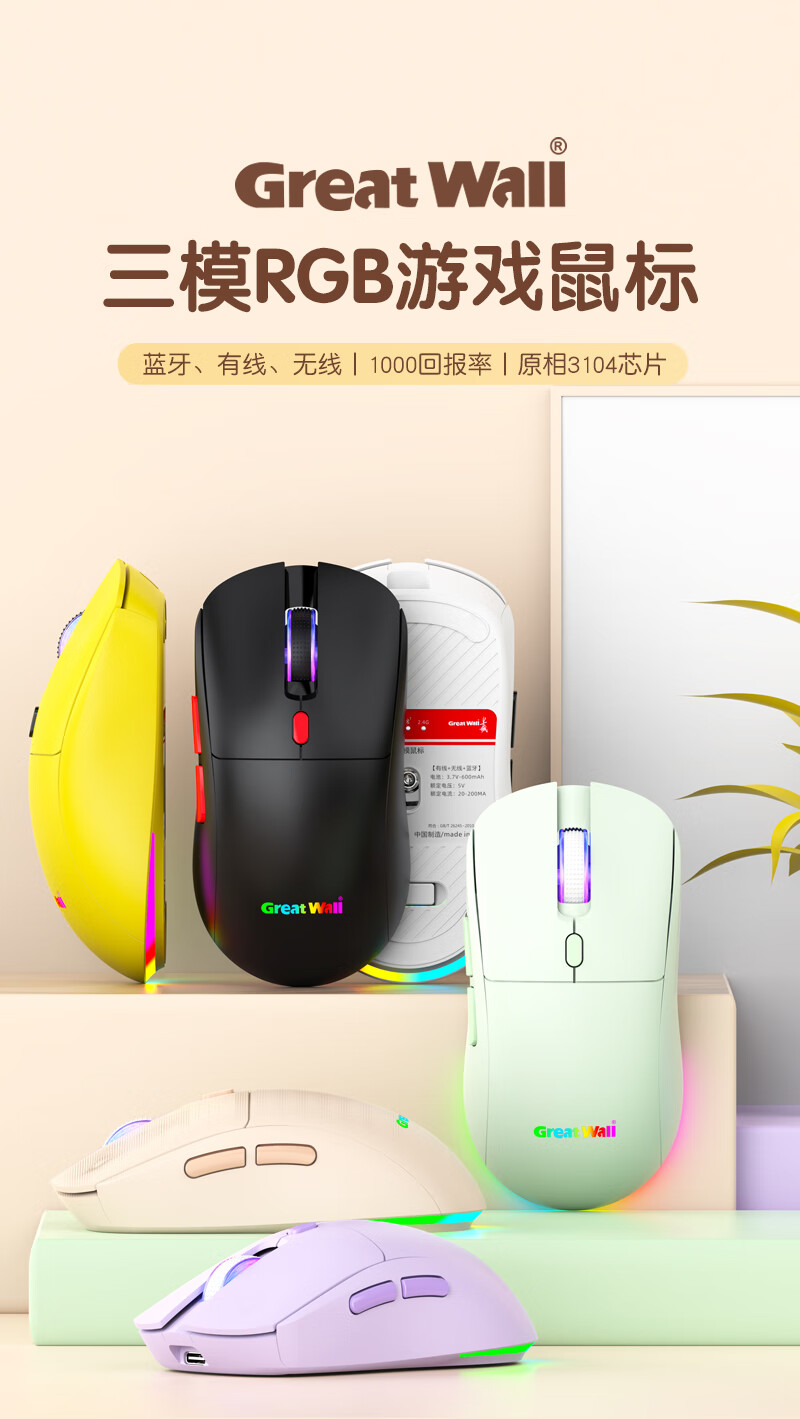 Great Wall Souris de jeu à trois modes filaire sans fil Bluetooth pilote ordinateur portable ordinateur de bureau téléphone portable tablette universelle blanc taux de retour 1K + 8000 DPI + pilote de page Web RVB