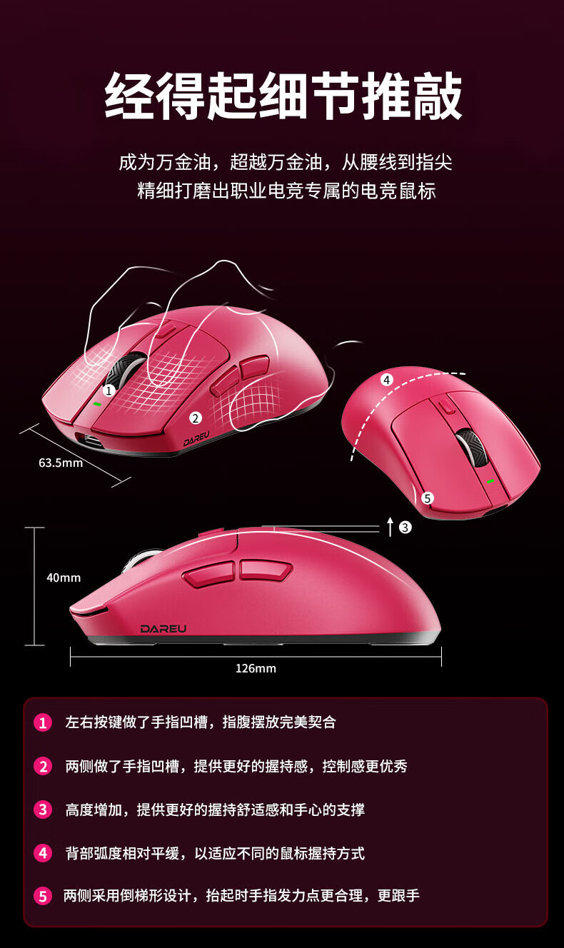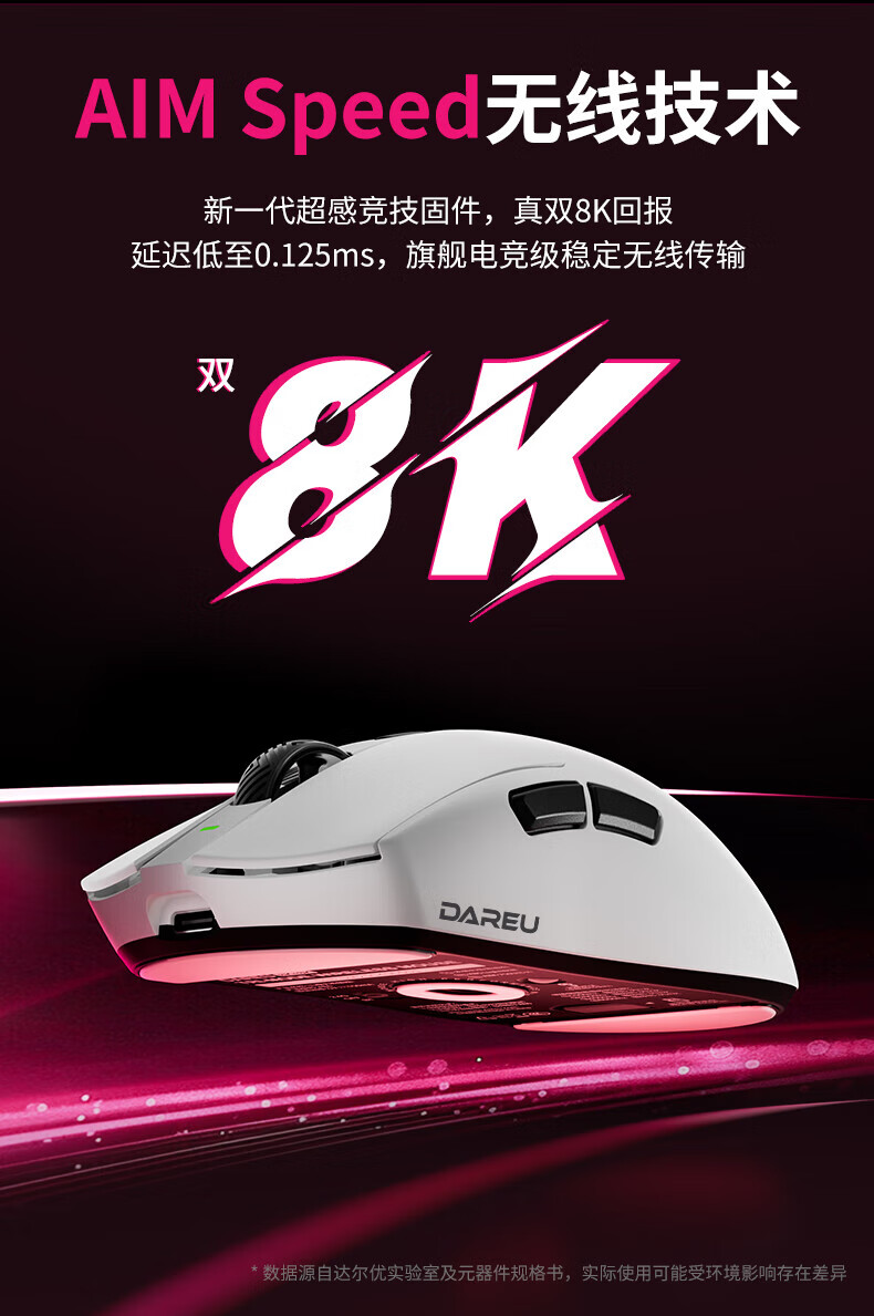 达尔优AE6三模游戏鼠标达尔优定制芯片电竞鼠标Nordic主控有线无线双8K回报率万金油模具FPS无畏契约送礼 AE6-玫红色