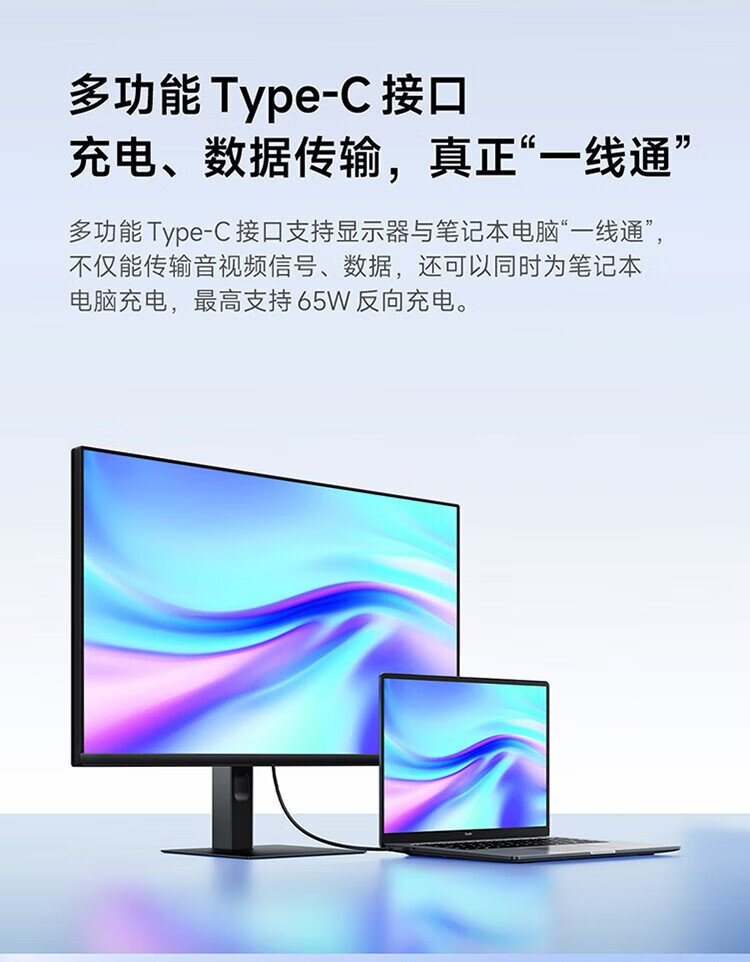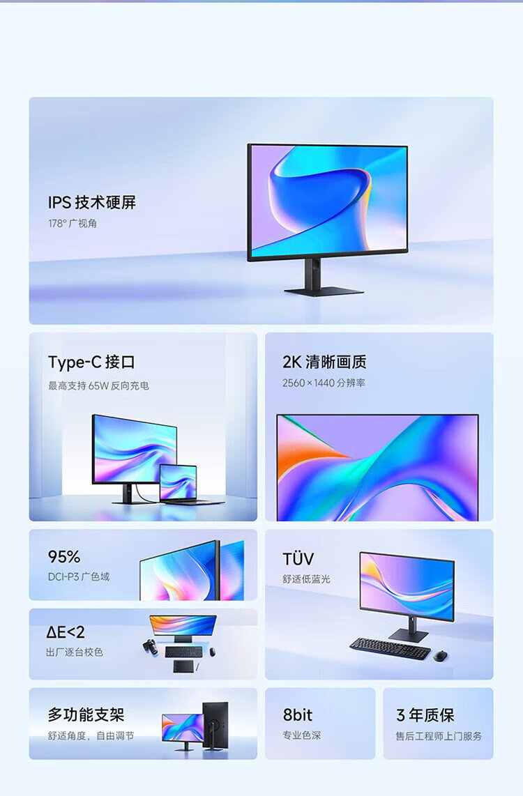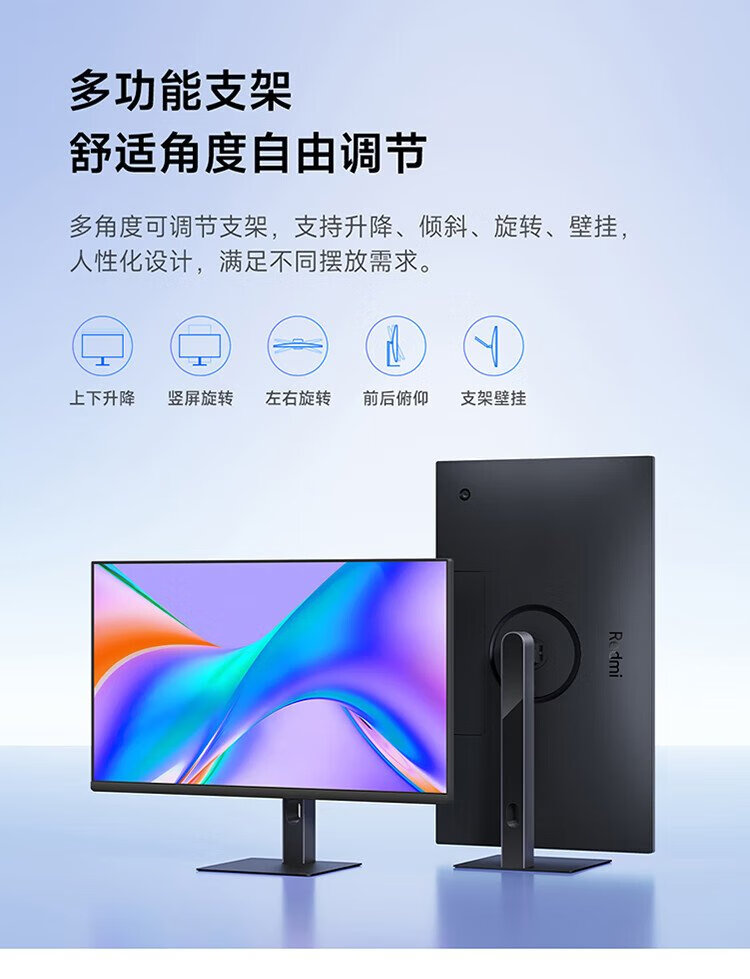 Xiaomi Redmi 27-inch 2K monitor A27Q rotating lifting bracket IPS technology Type-C reverse charging low blue light eye-friendly computer office monitor