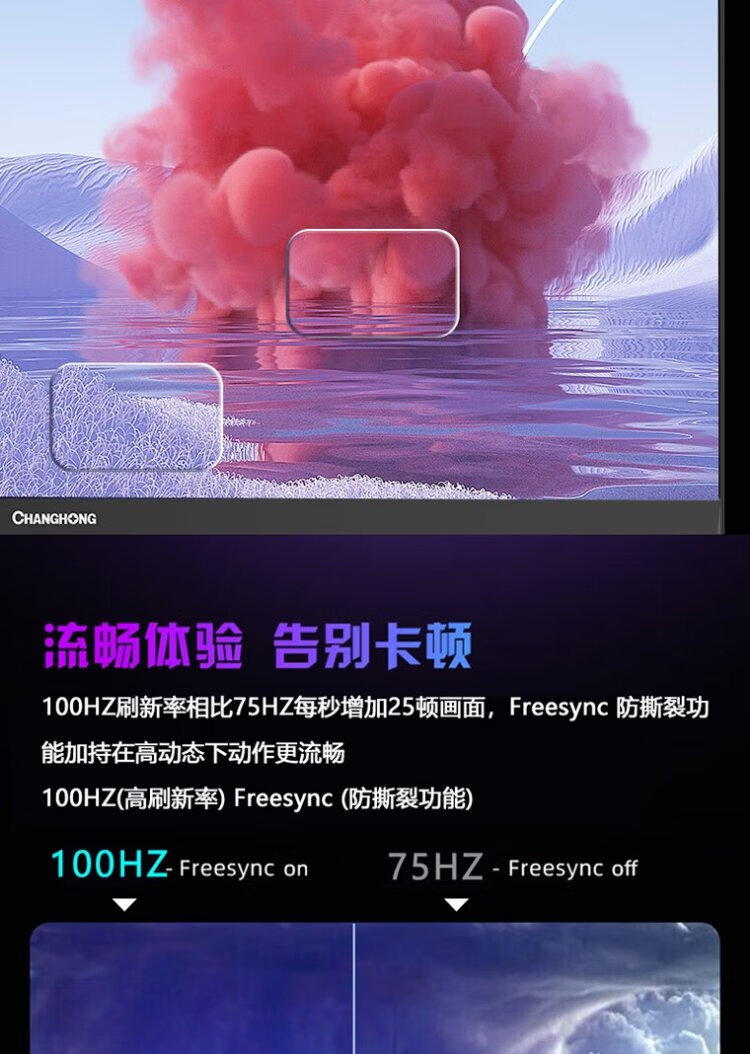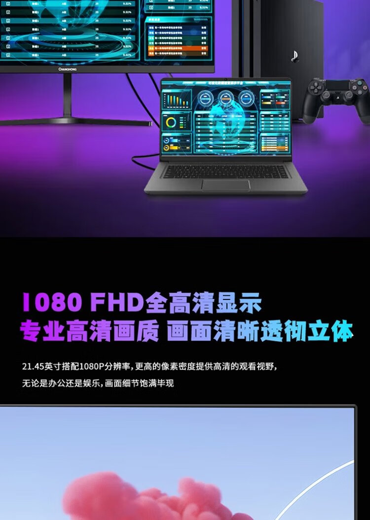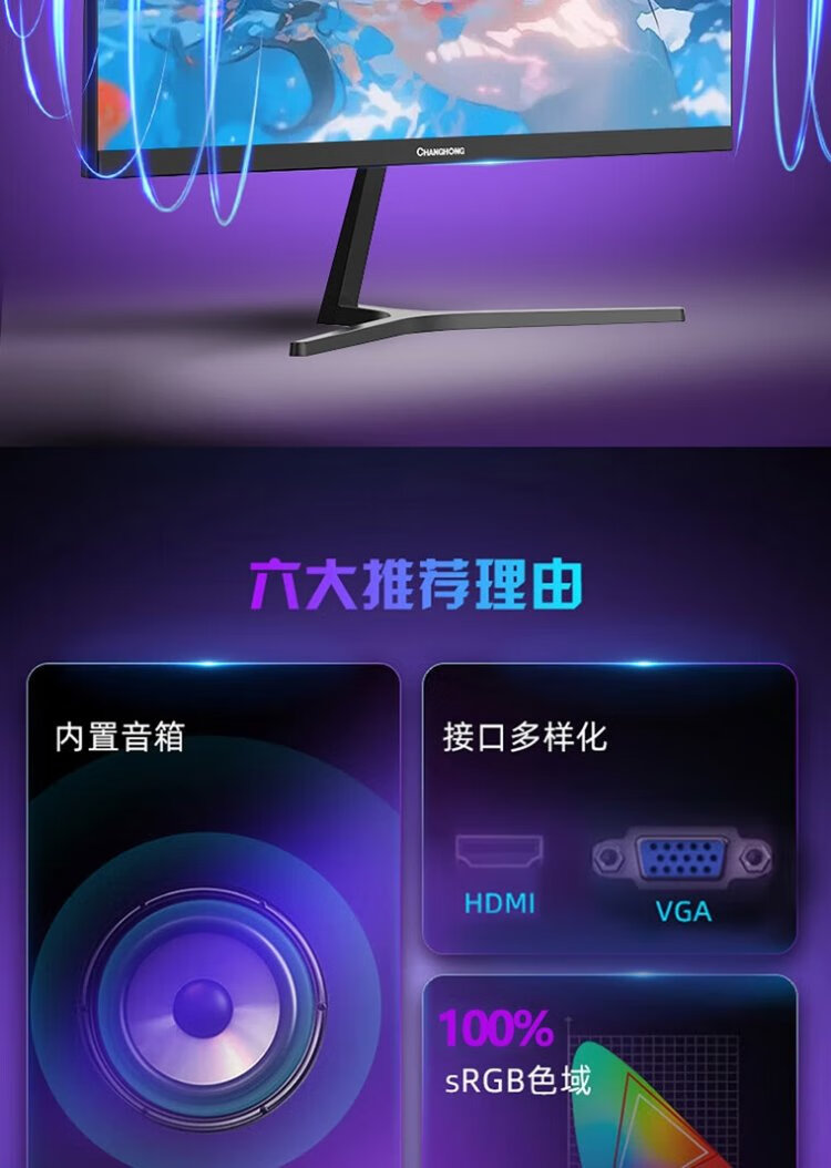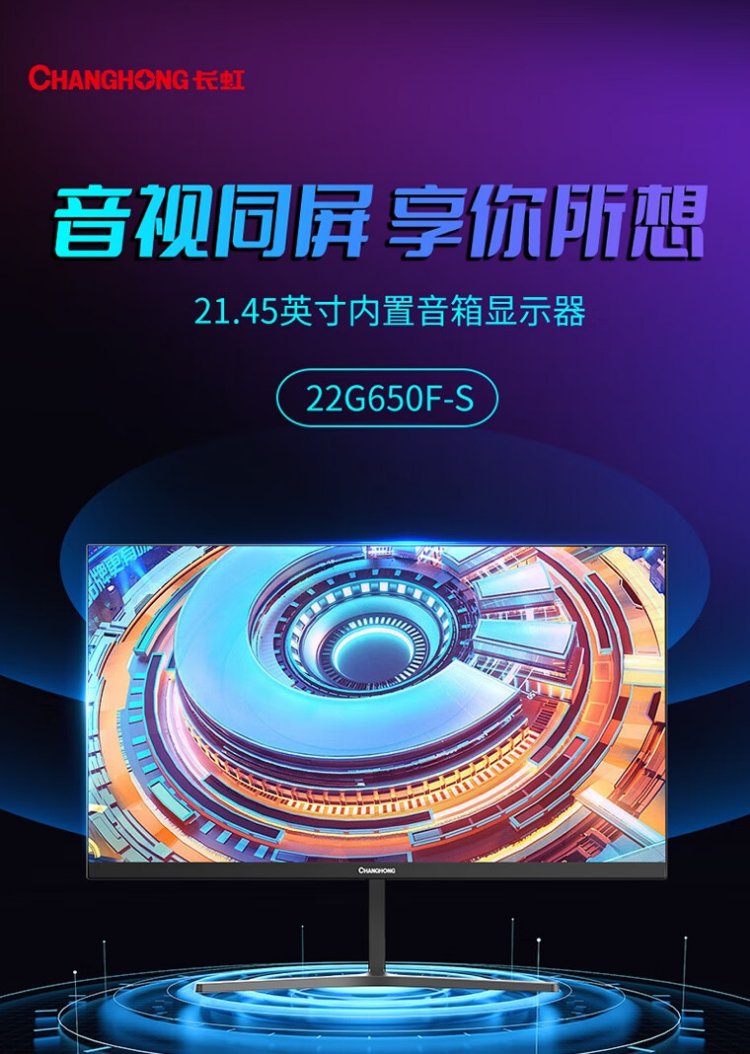 Changhong 21,45-Zoll-FHD-Full-HD-100-Hz-HDMI+VGA-Gaming-Monitor 22G650F-S mit integrierten Lautsprechern, geringem Blaulicht, Augenschutz, Energiesparzertifizierung