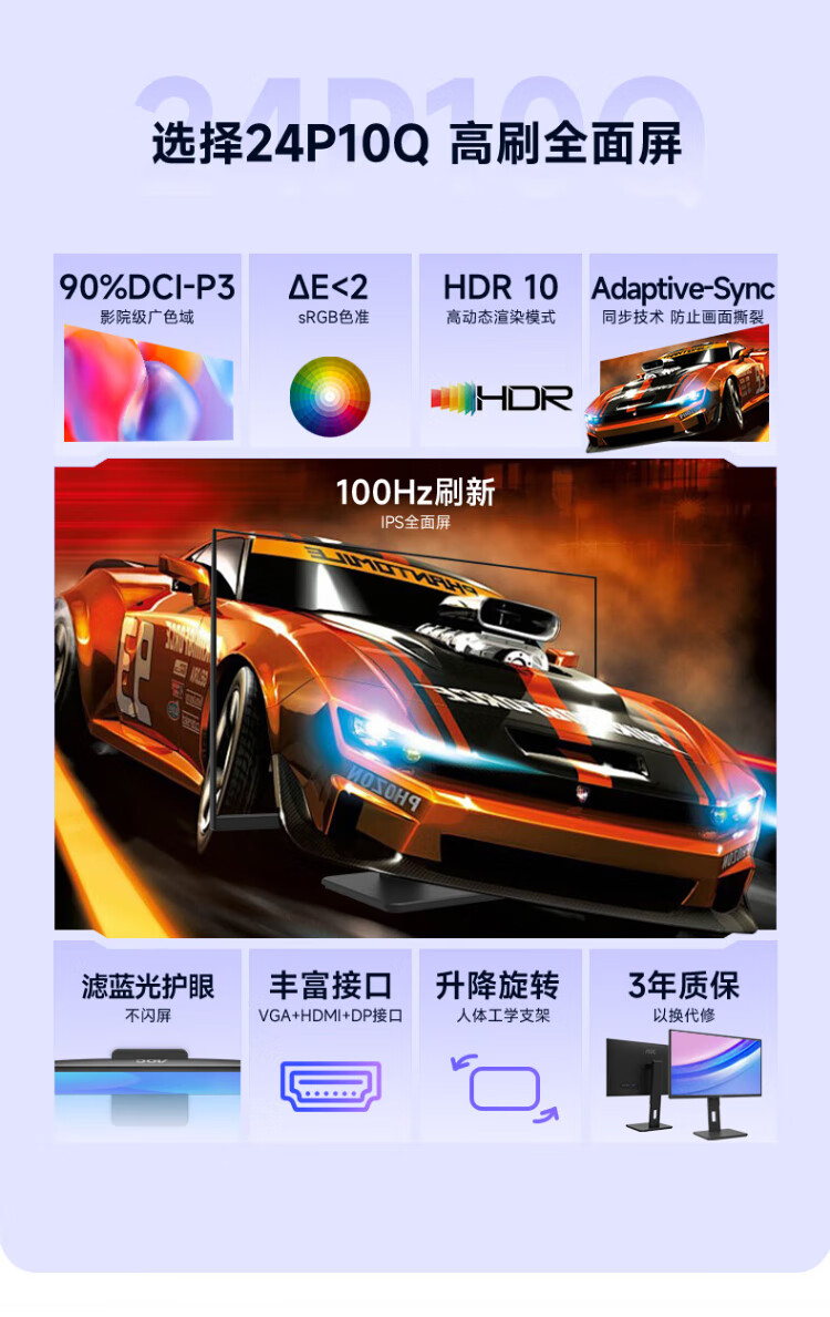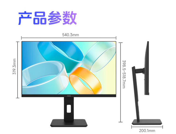 AOC显示器 IPS电脑显示屏幕 旋转升降 办公学习护眼低蓝光 台式拓展笔记本外接扩展屏23.8英寸24P10Q