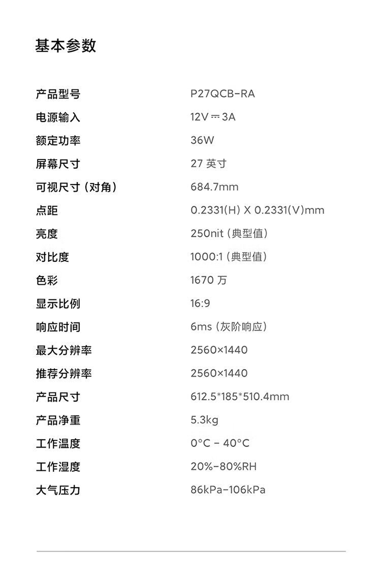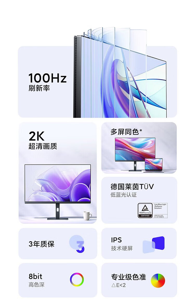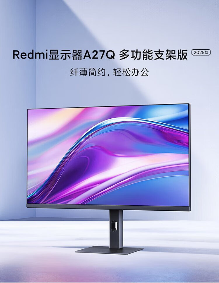 小米Redmi 27英寸2K显示器 A27Q 多功能支架版 2025款 IPS技术 100Hz 广色域电脑办公显示器