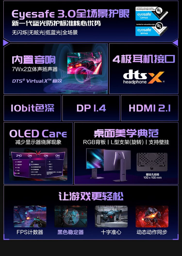 LG 31.5-inch 4K display OLED display dual-mode 4K240Hz/1K480Hz built-in speakers anti-glare computer display 32GS95UV