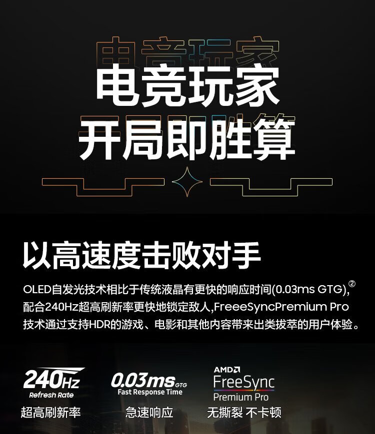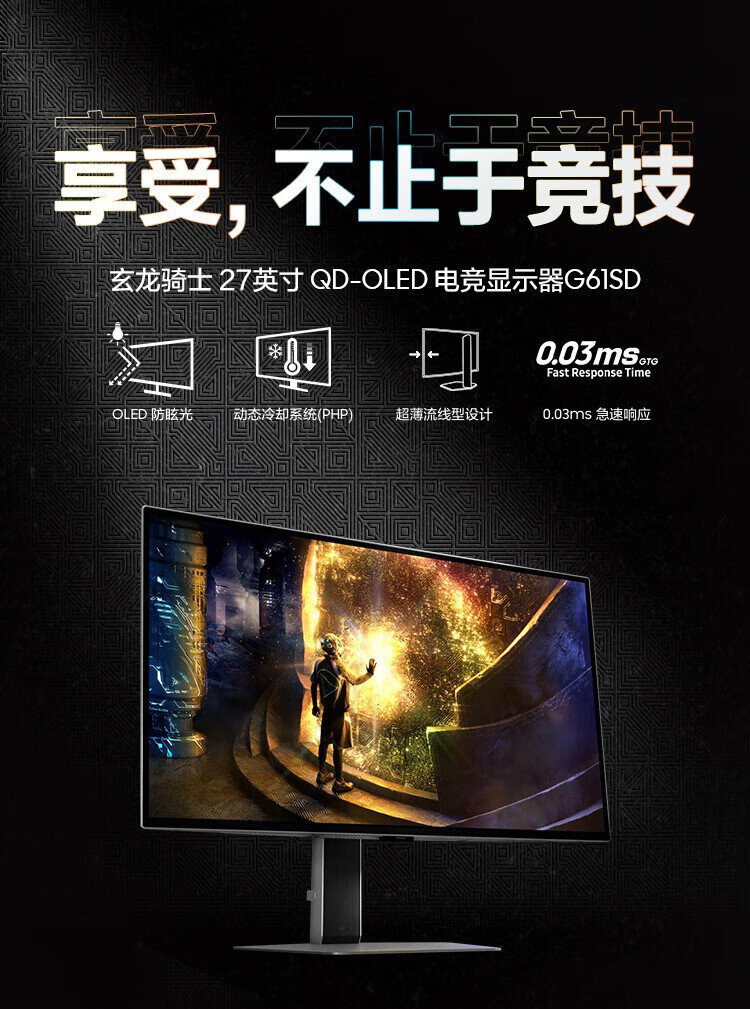 三星(SAMSUNG)27英寸 G61SD QD-OLED 240Hz 2K 0.03msGTG 防烧屏技术防眩光玄龙骑士 电竞显示器 LS27DG610SCXXF