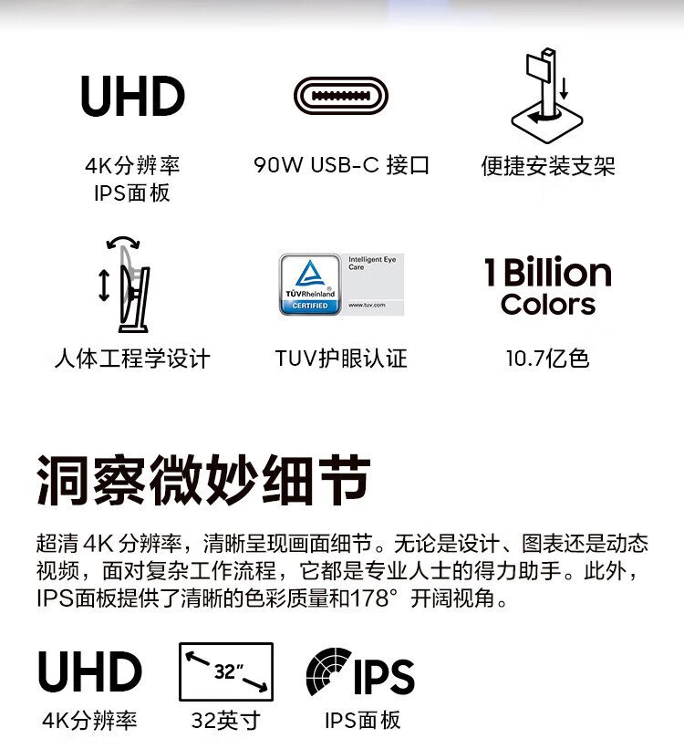 Samsung (SAMSUNG) 32-inch S80UD 4K IPS HDR Type-C90W HDMI DP portable mounting base lifting and rotating office monitor LS32D802UBCXXF