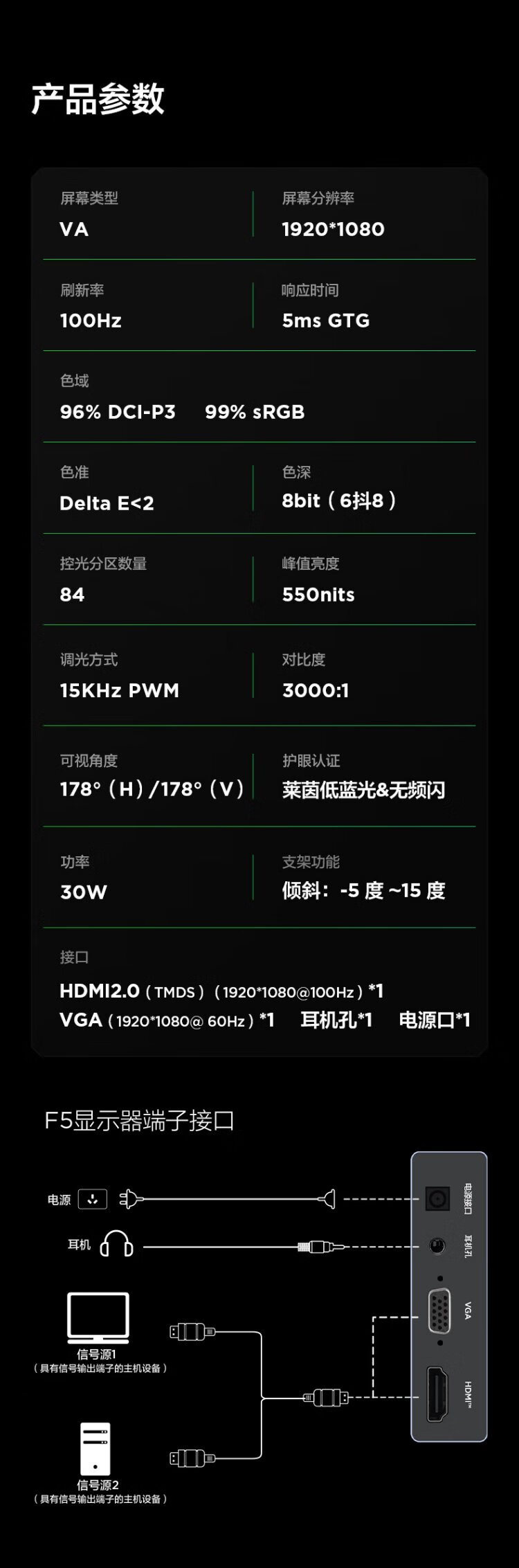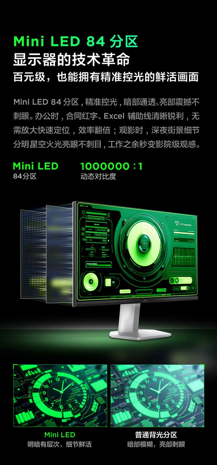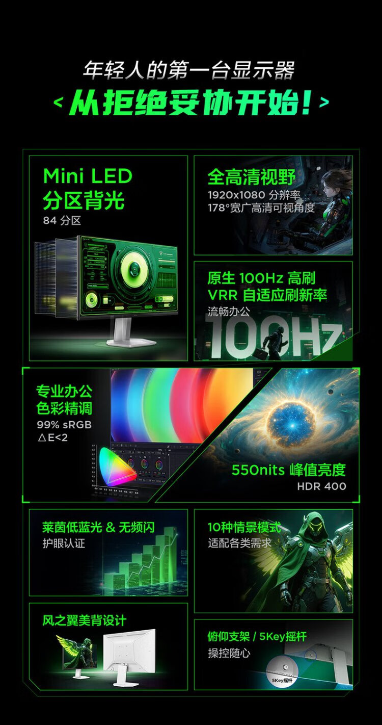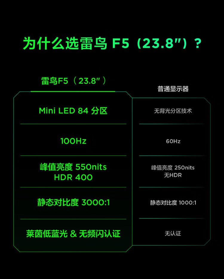 FFALCON雷鸟F5 23.8英寸100Hz MiniLED办公电脑显示器 99%SRGB 莱茵护眼认证 电竞显示屏 高亮不反光 一级能效