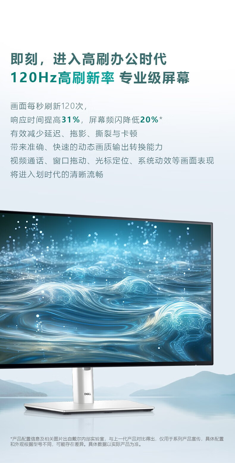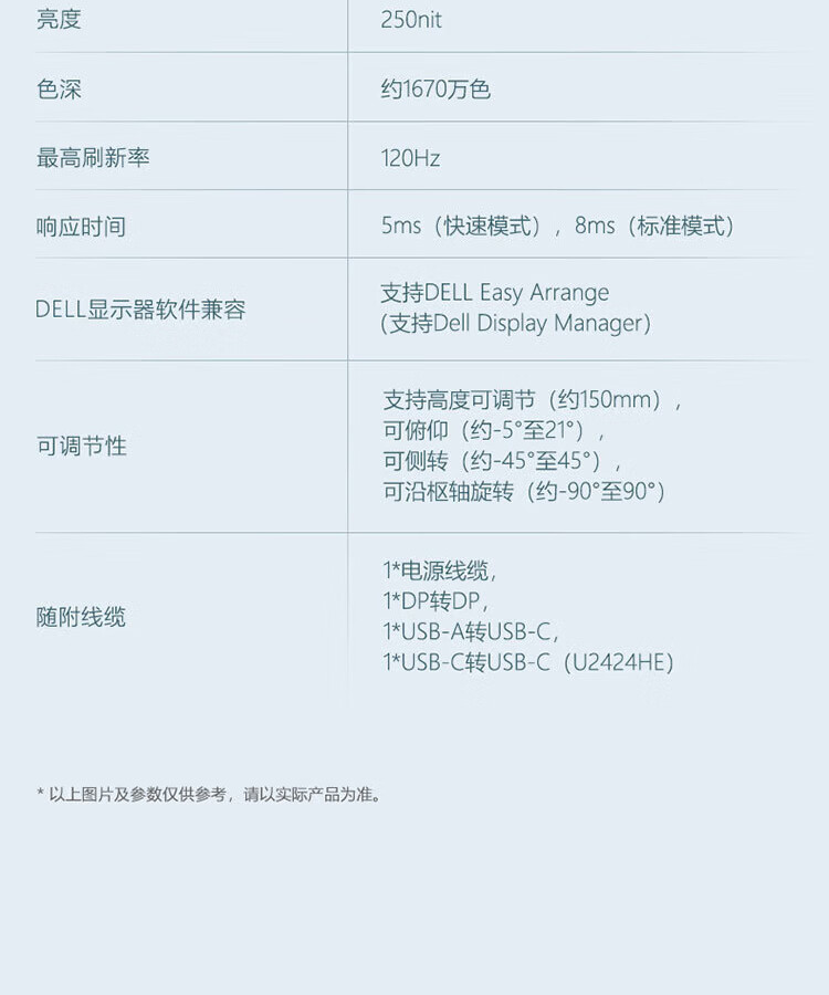 Dell (DELL) U2424H/HE Moniteur d'ordinateur de bureau à écran LCD haute définition de 23,8 pouces, taux de rafraîchissement de 120 Hz, levage et rotation, Type-C U2424HE