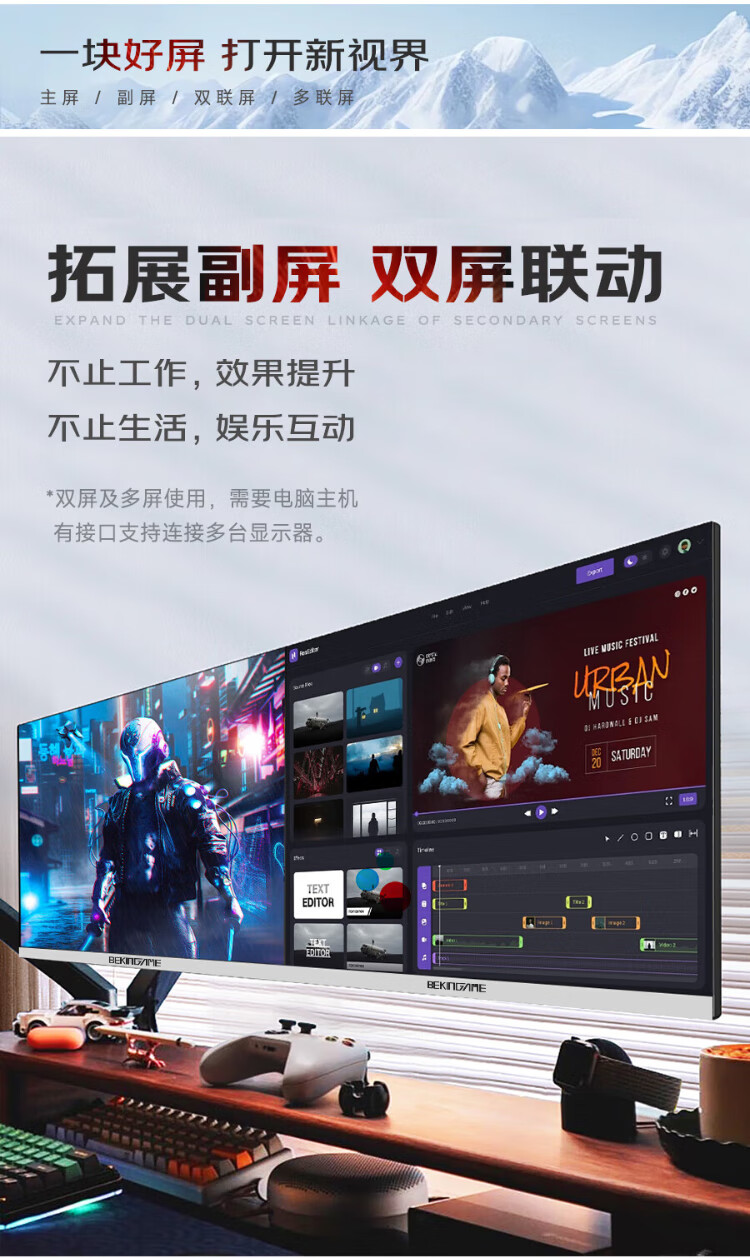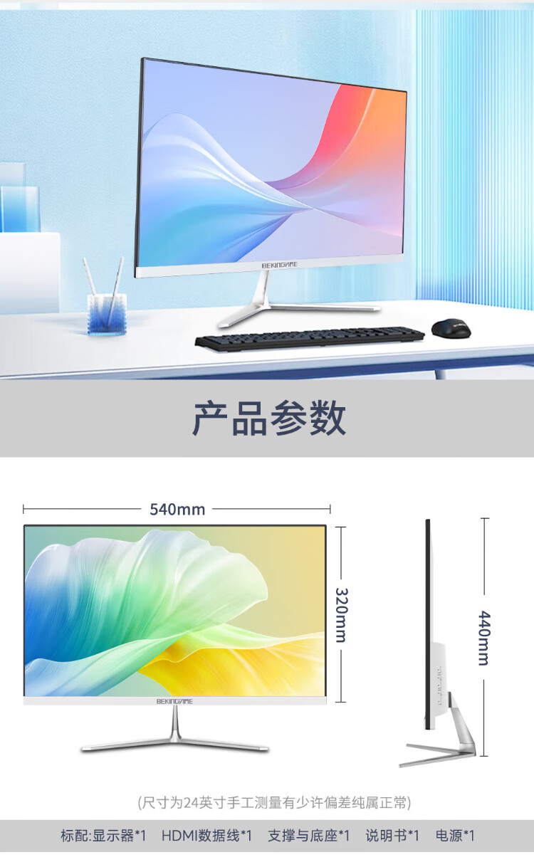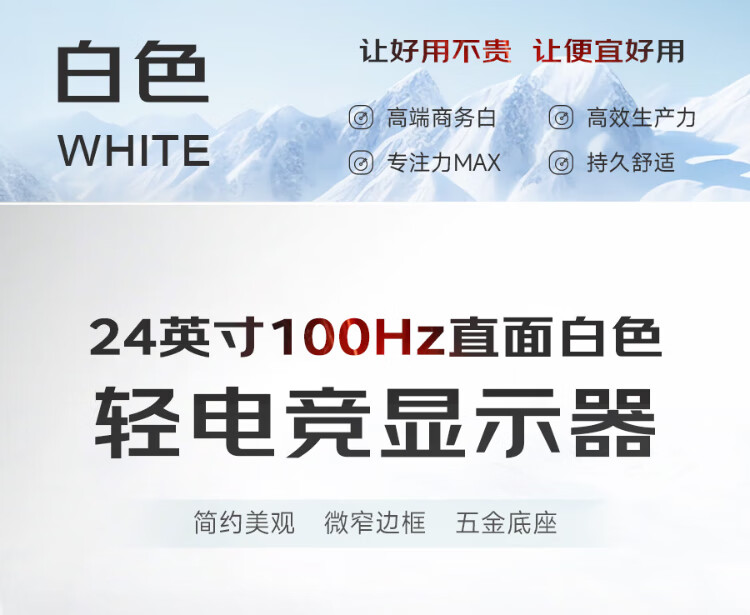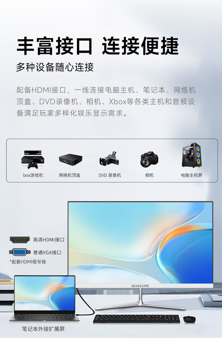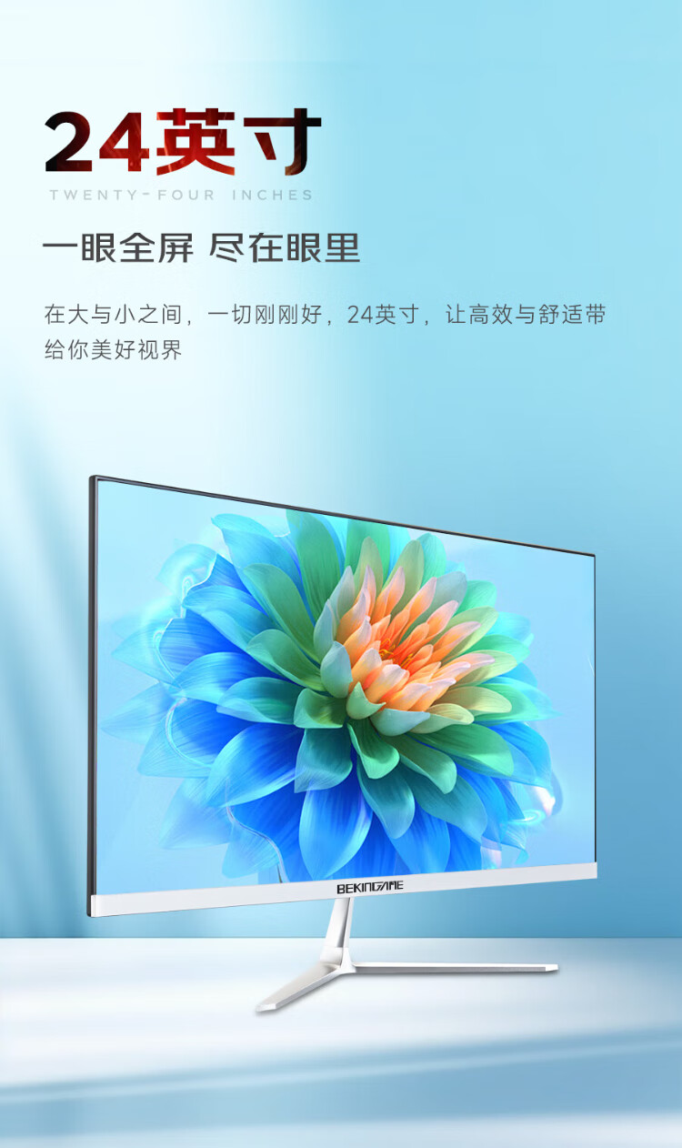 蜂王电竞24英寸100Hz显示器电脑显示屏高清办公轻电竞游戏屏幕75HZ家用监控白色扩展23.8副屏