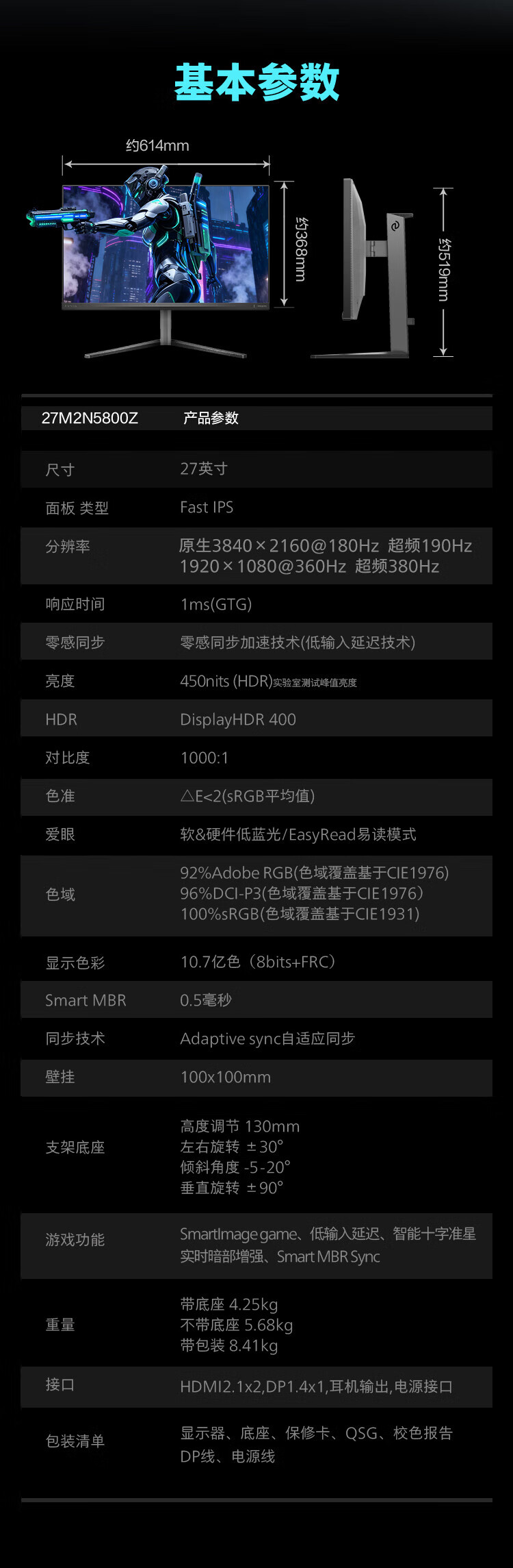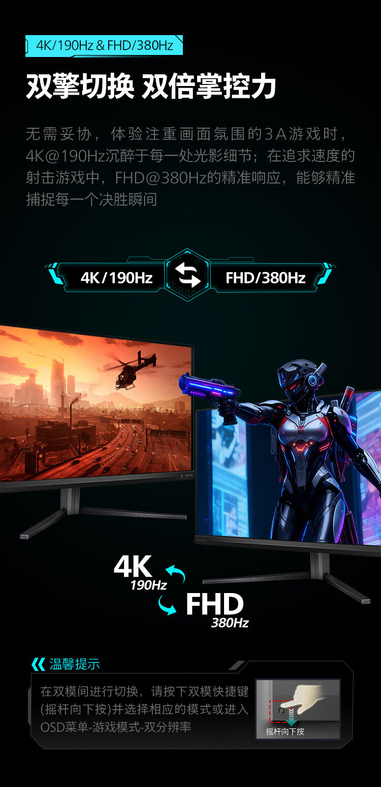Philips EVNIA Yiwei 27-inch 4K190Hz/380Hz dual-mode hardware low blue light FastIPS HDR400 color correction HDMI2.1 e-sports monitor 27M2N5800Z