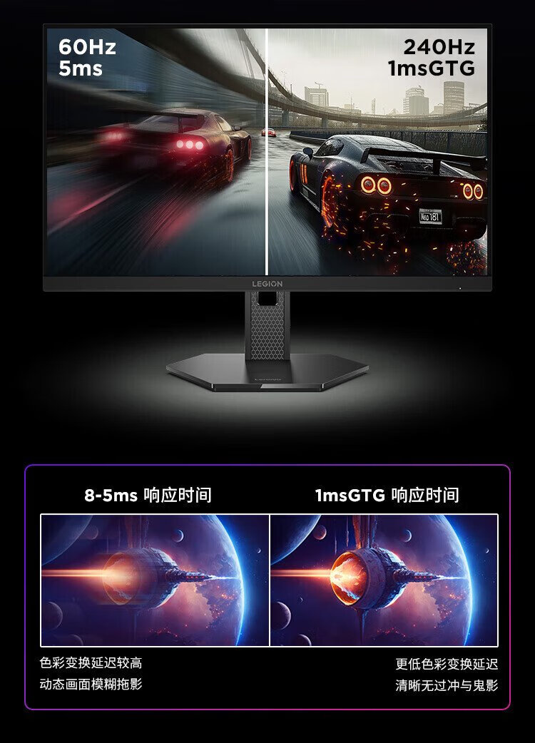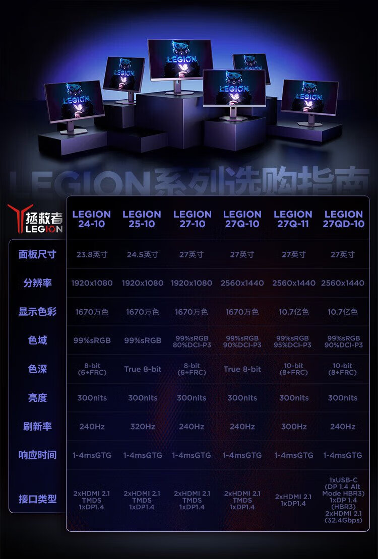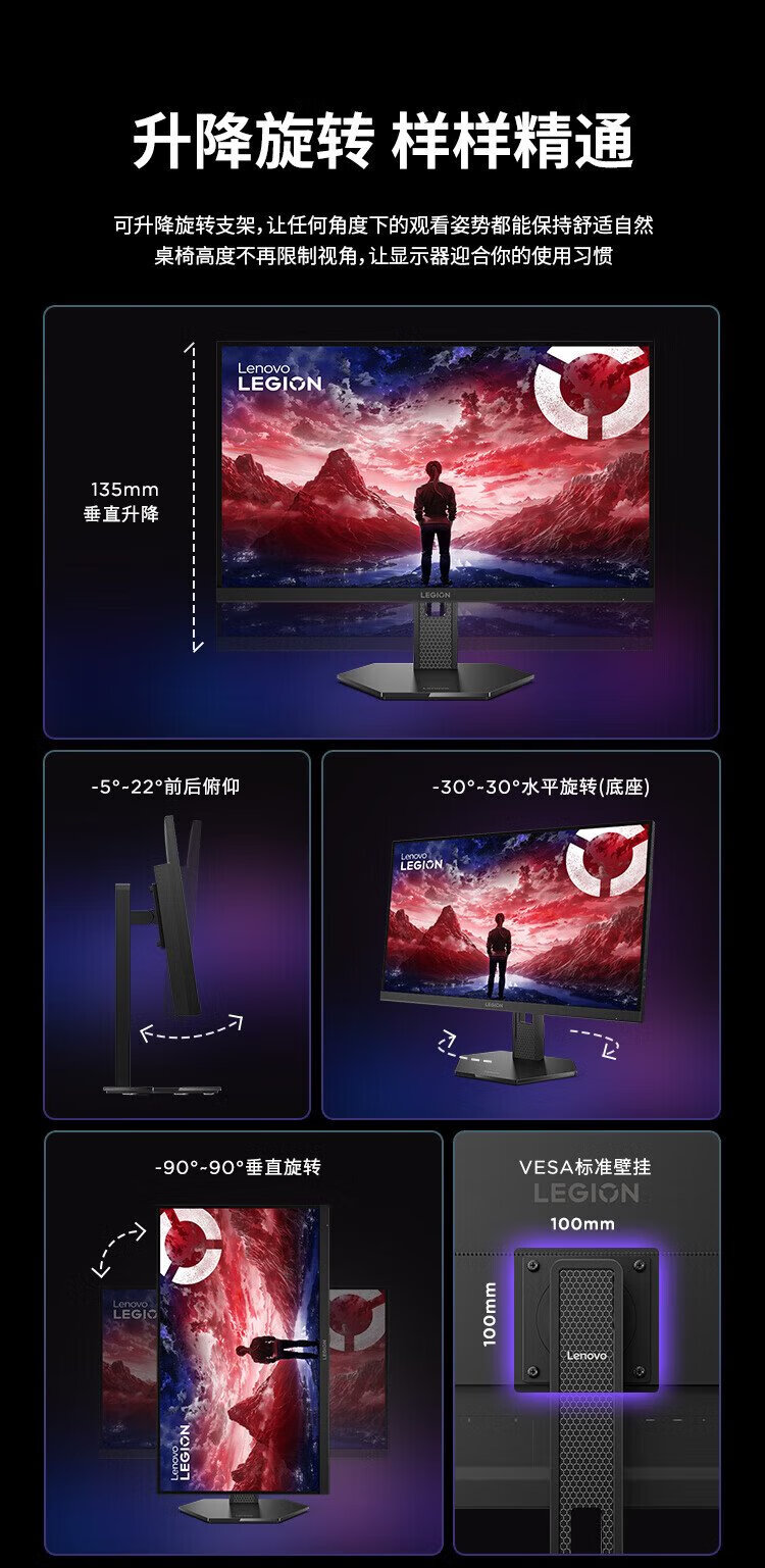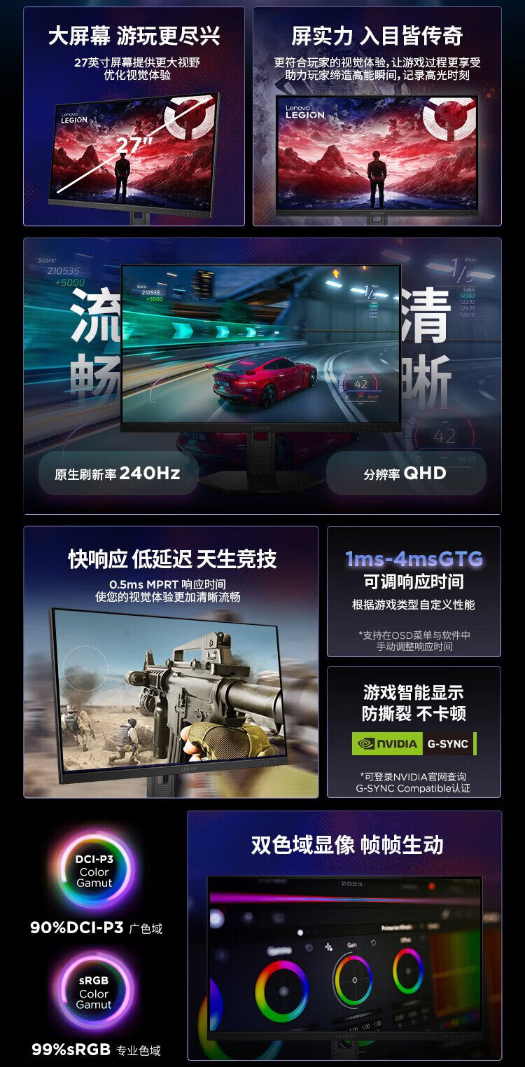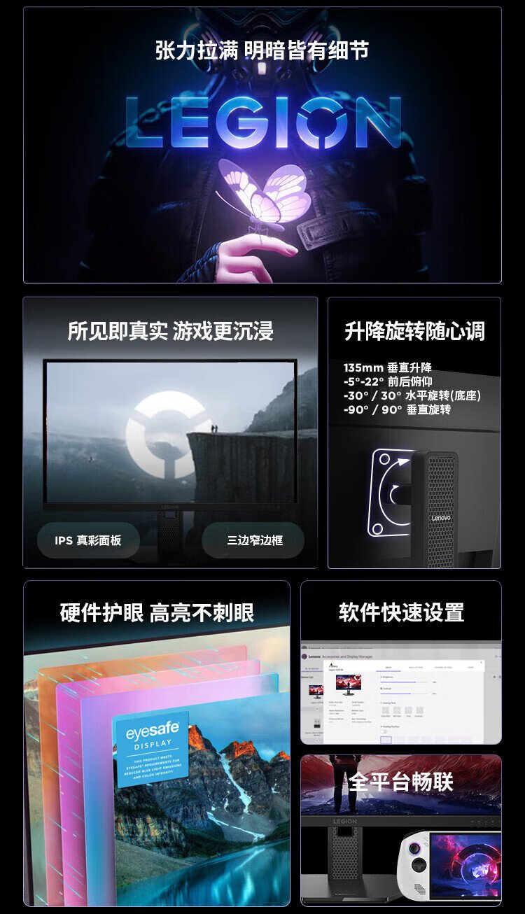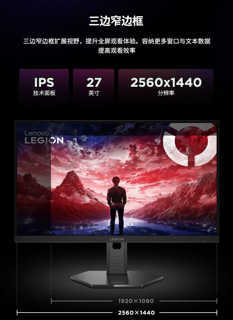 Lenovo (Lenovo) Rescuer 27-Zoll-2K-High-Definition-Gaming-Monitor, schneller LCD-IPS-Bildschirm, 1 ms Reaktion, HDR-Zertifizierung, Hardware mit niedrigem Blaulichtanteil, rotierendes Lift-Computerdisplay, 2K, nativ, 240 Hz, LEGION 27Q-10
