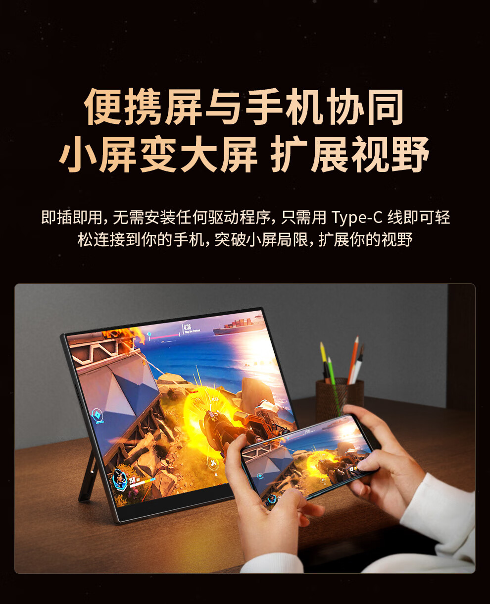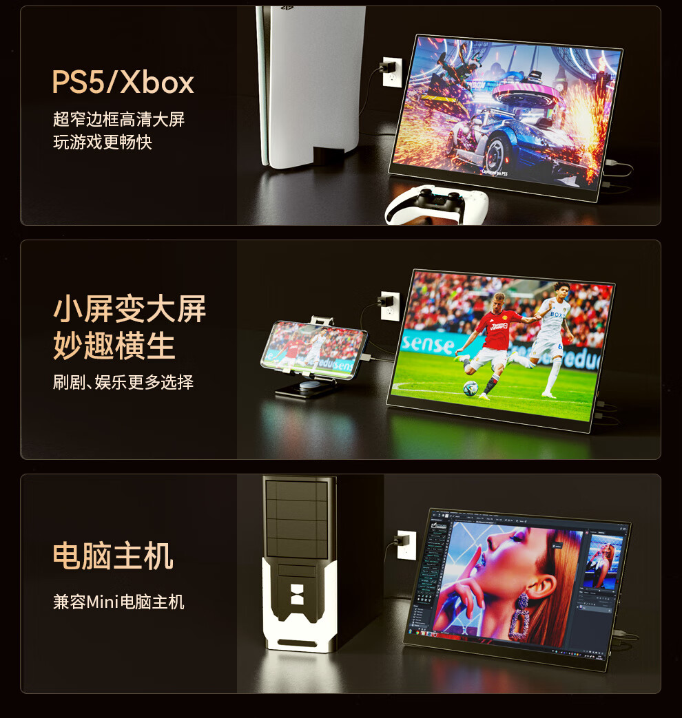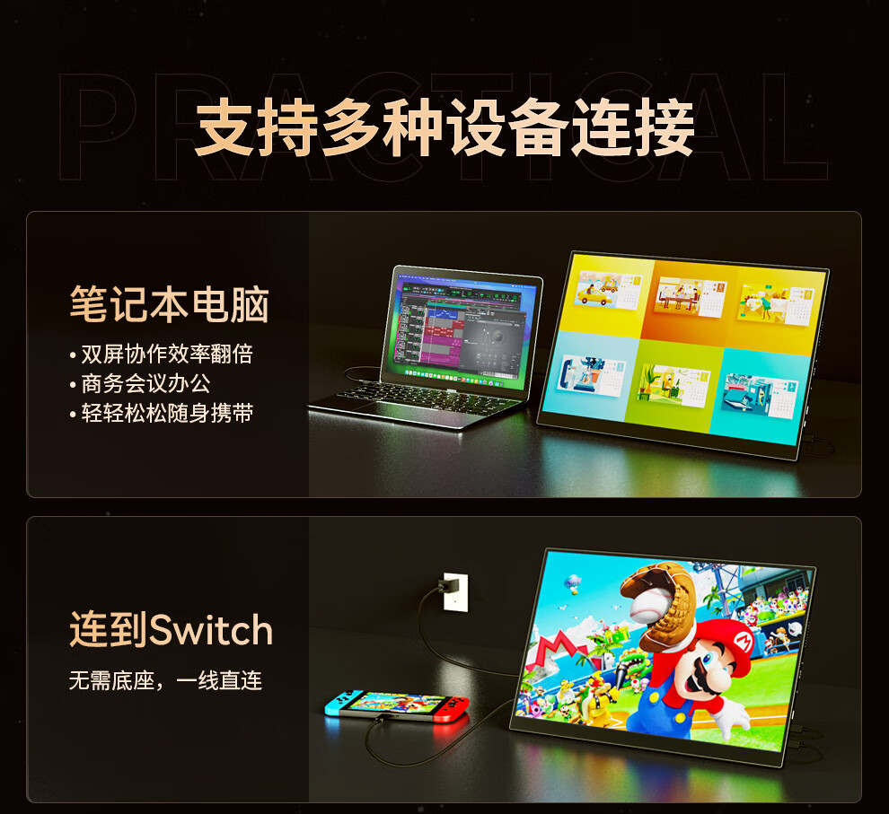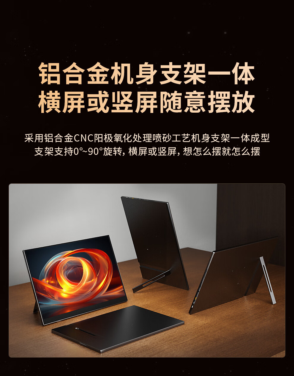奥斯曼(AOSIMAN)【便携显示器适用米华为机】便携式显示器4K高刷外接扩展switch笔记本电脑便携ps5拓展办公屏 13.3英寸1080P双色域【支持键鼠】