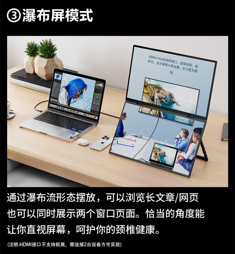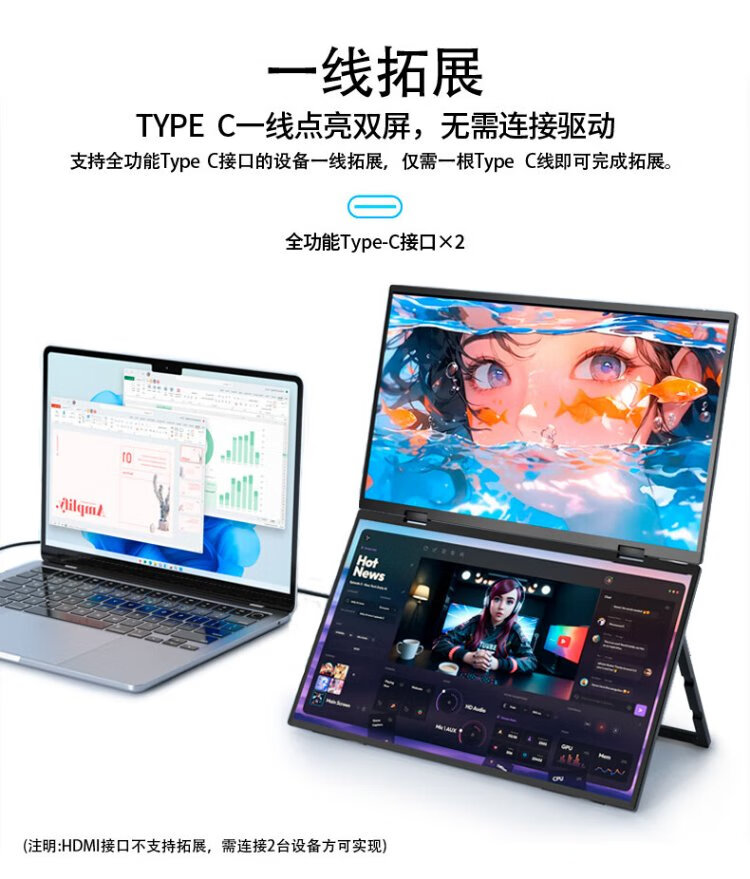 斯波兰(sibolan)可折叠双屏便携式显示器 电脑笔记本触控手机Ps5外接扩展办公炒股游戏副屏幕 触摸款丨折叠双屏15.6英寸 【一线直连丨免驱动】