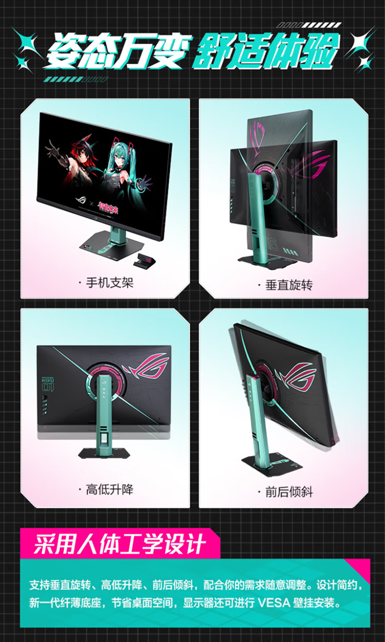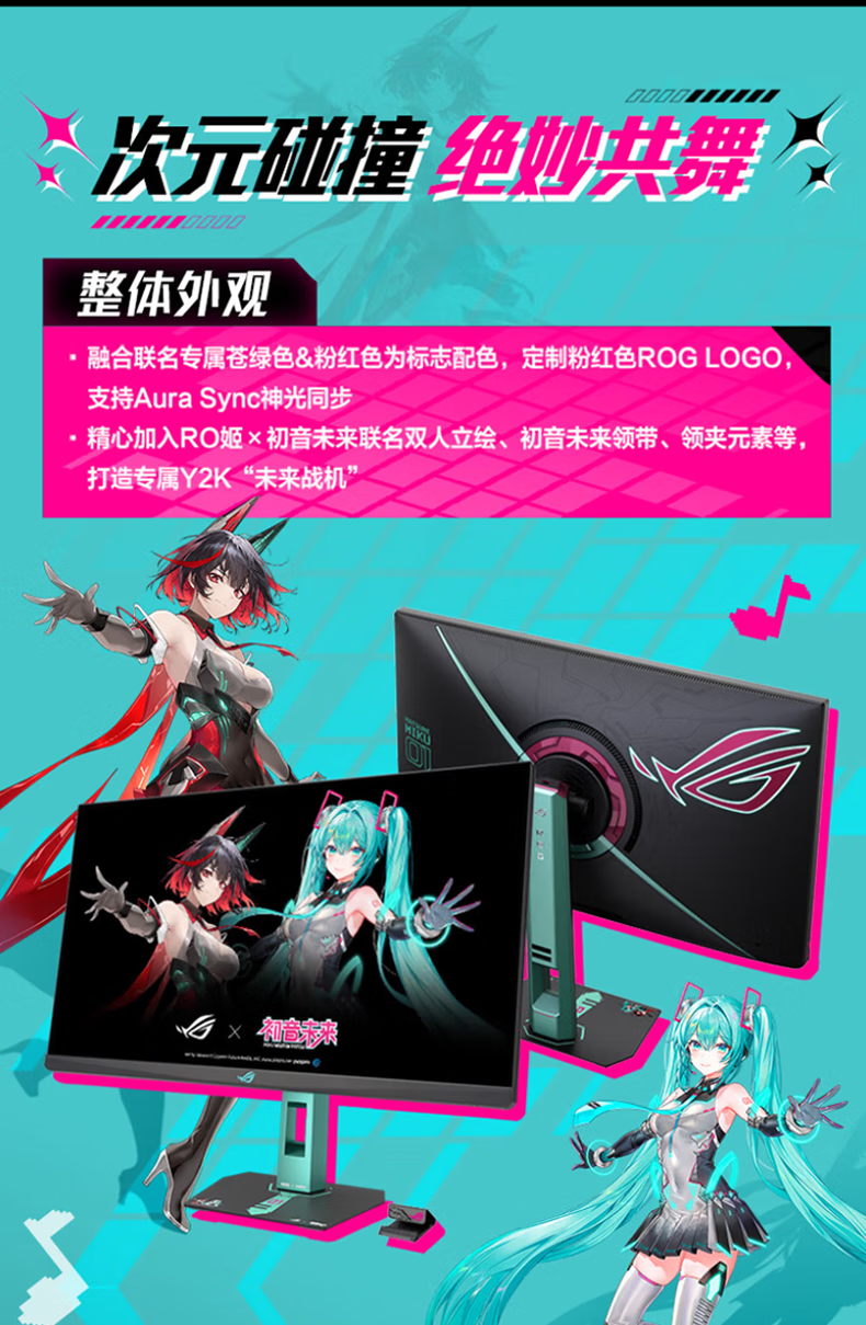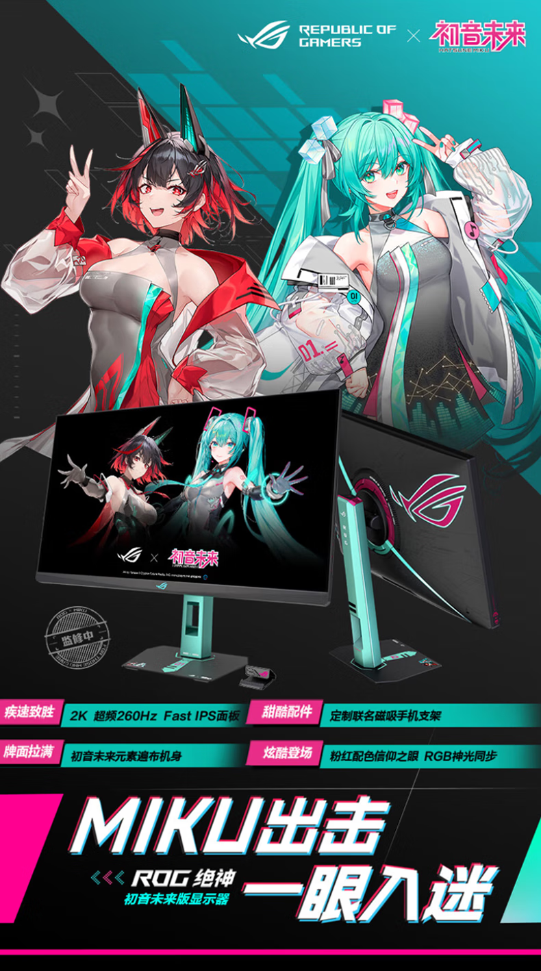 ASUS ROG ROK x Hatsune Miku Edition Écran 2K 27 pouces 240 Hz overclocking e-sports 260 Hz 0,3 ms HDR400 HDMI2.1 XG27ACMEG-R HDMI2.1 2K260Hz XG27ACMEG-R