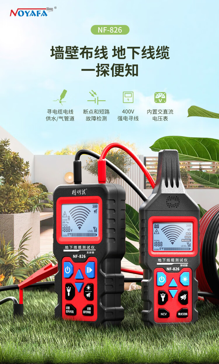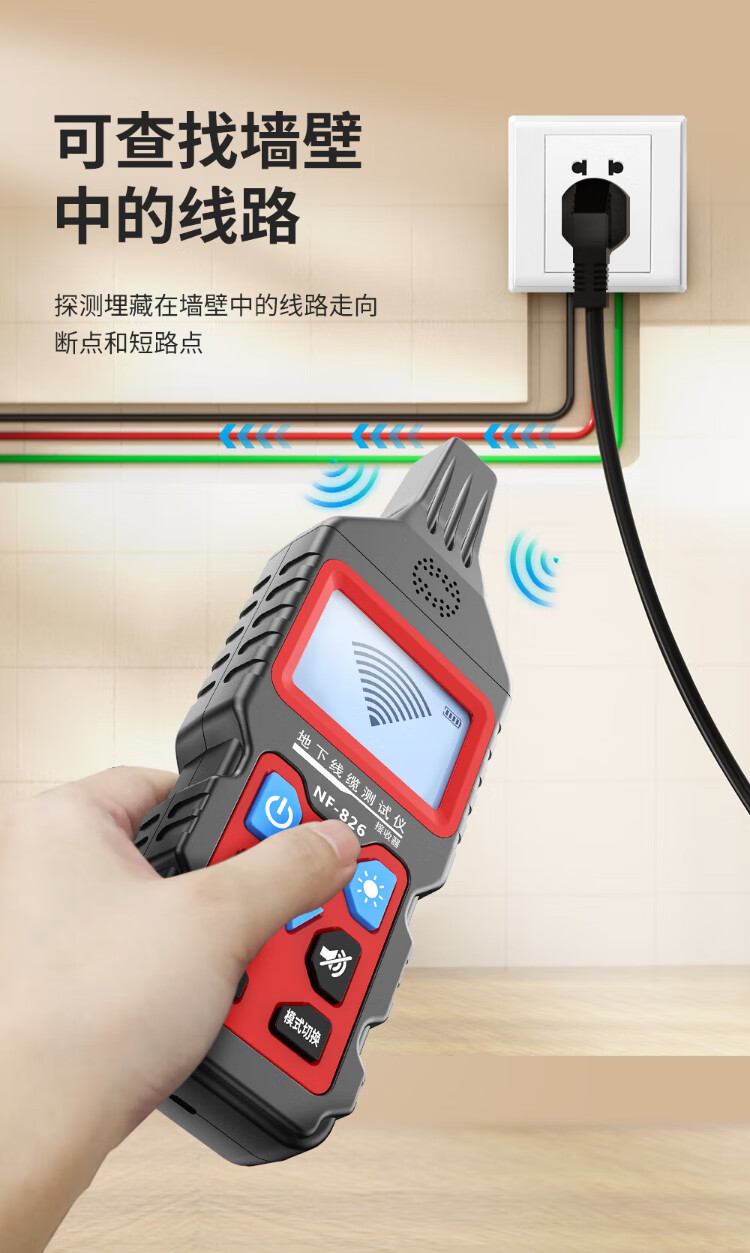 Intelligente Maus NF-826 Leitungspatrouilleninstrument, Multifunktions-Leitungssucher, 220-V-Elektriker-Leitungsprüfer, starker Strom, Erdleitung, Fehlererkennung, Überprüfung des Haltepunkts, Kurzschluss-Leitungstester, Draht und Kabel
