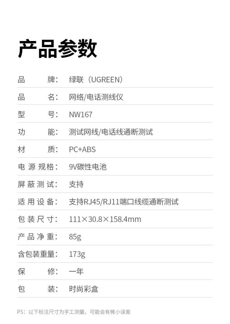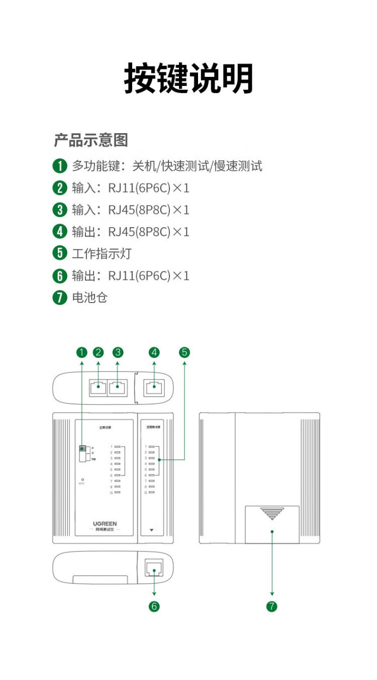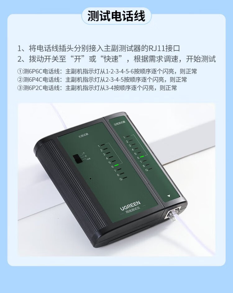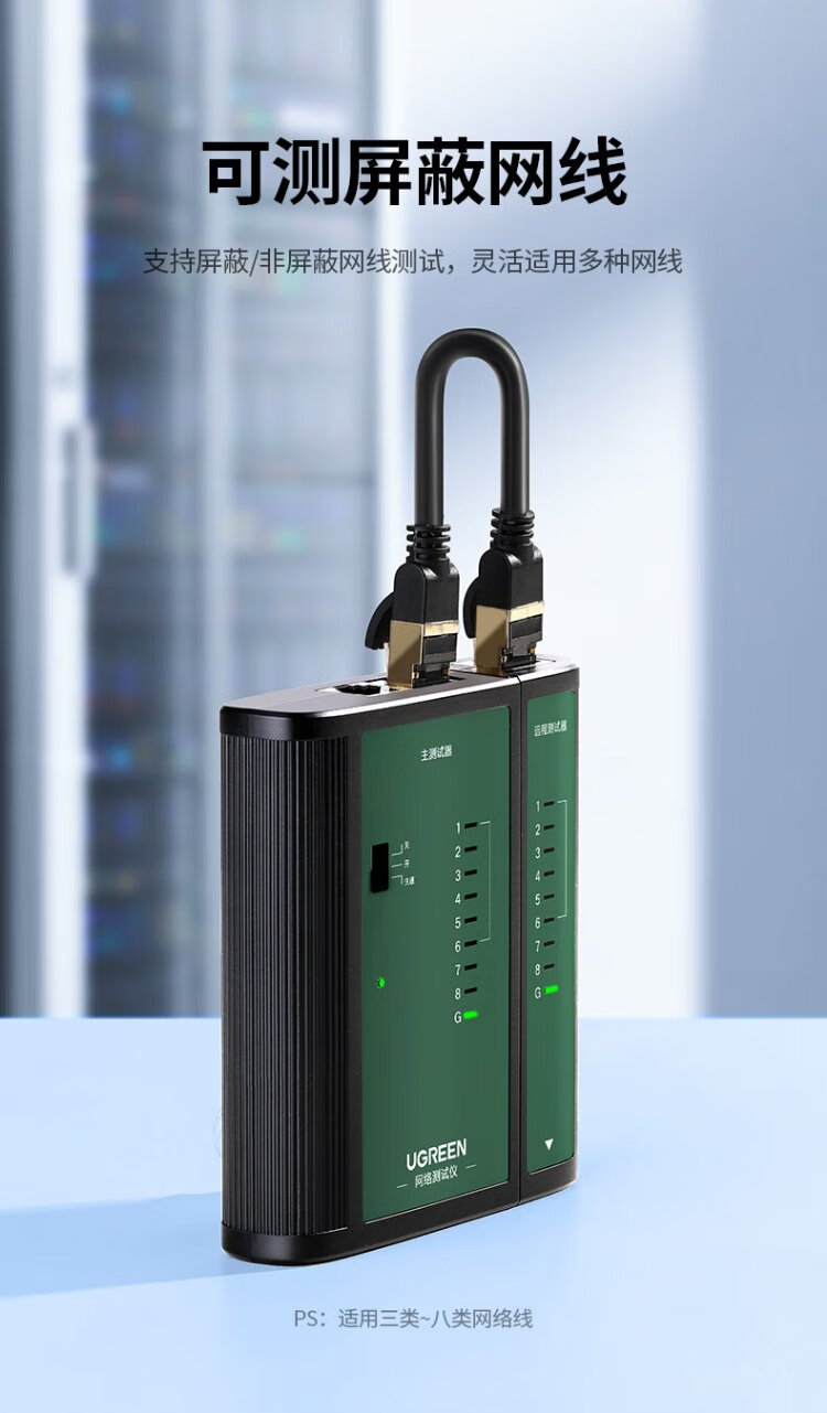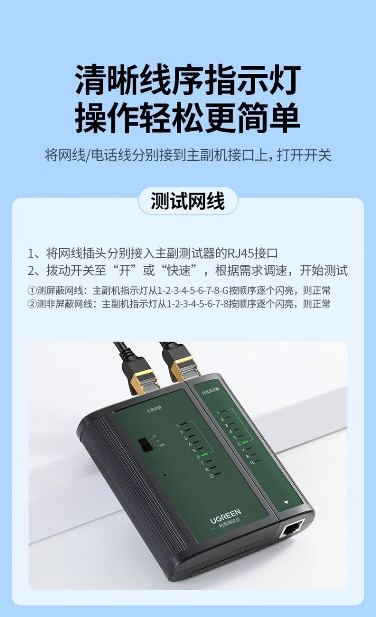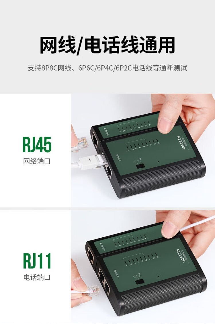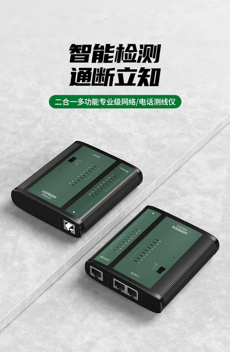 绿联网线测试仪 多功能网线/电话测线仪 电脑网络水晶头电话线工程/家用智能信号检测通测试仪器通断器