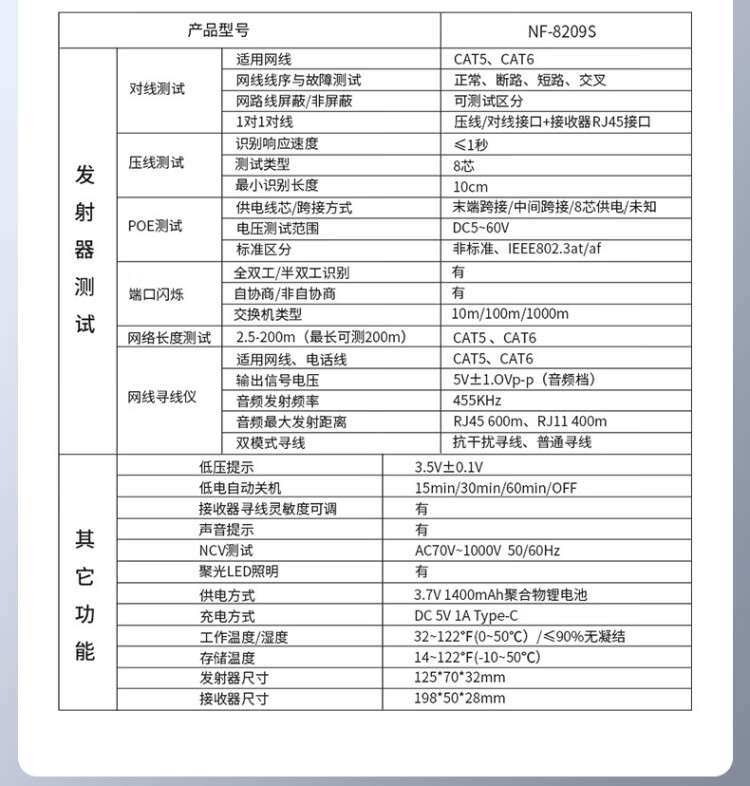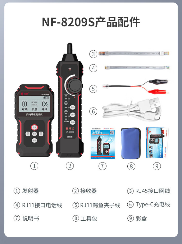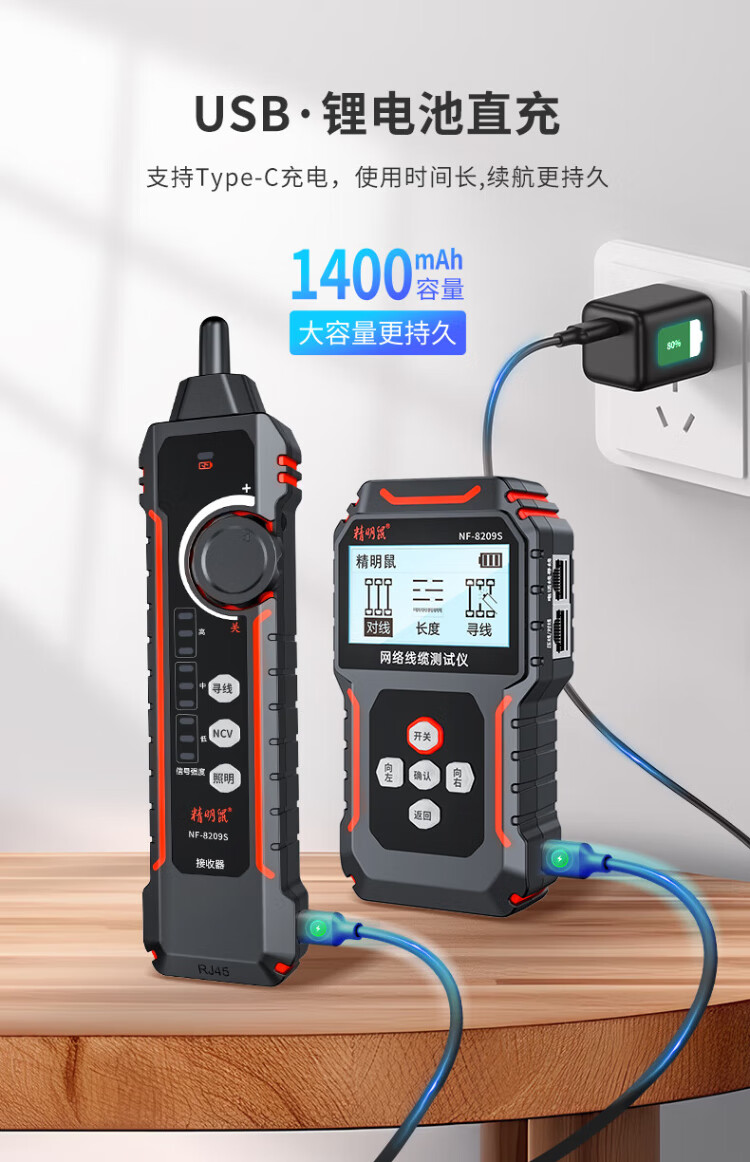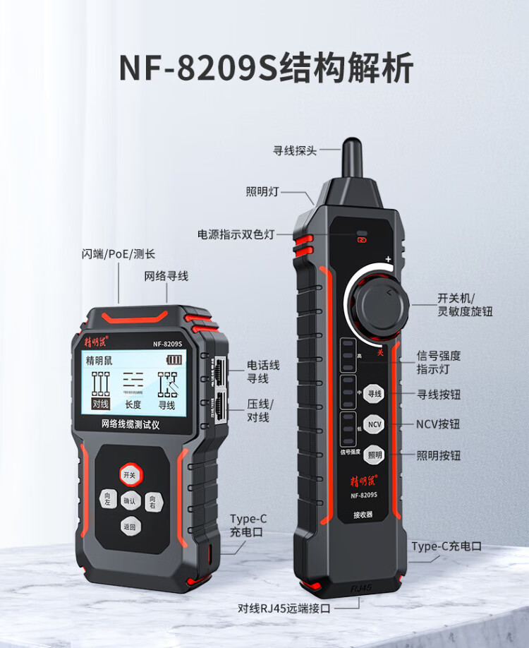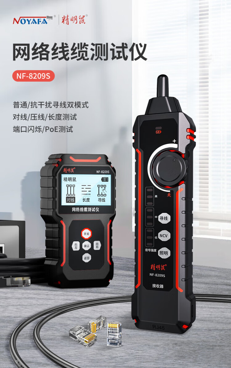 精明鼠NF-8209S寻线仪寻线器长度测试网线断点短路点测试仪查线器端口闪烁压接测试