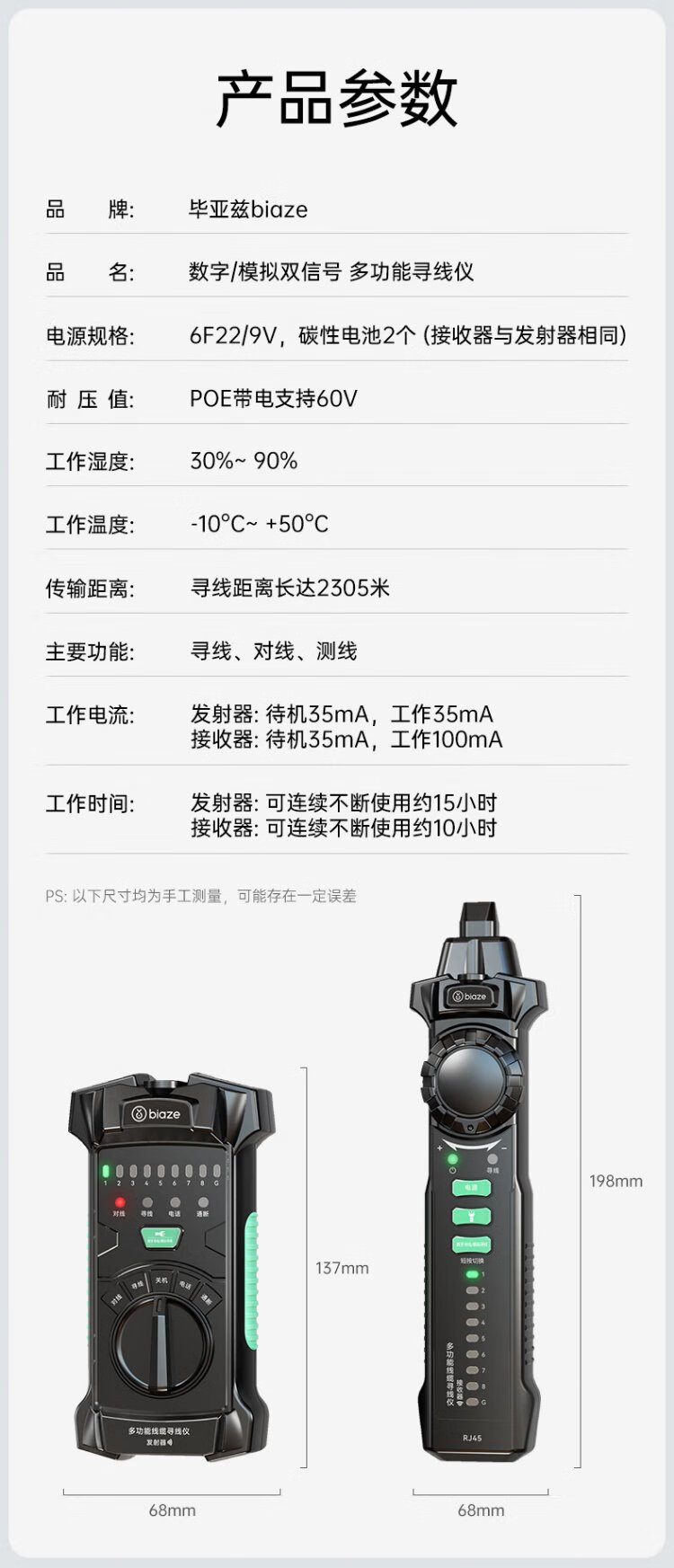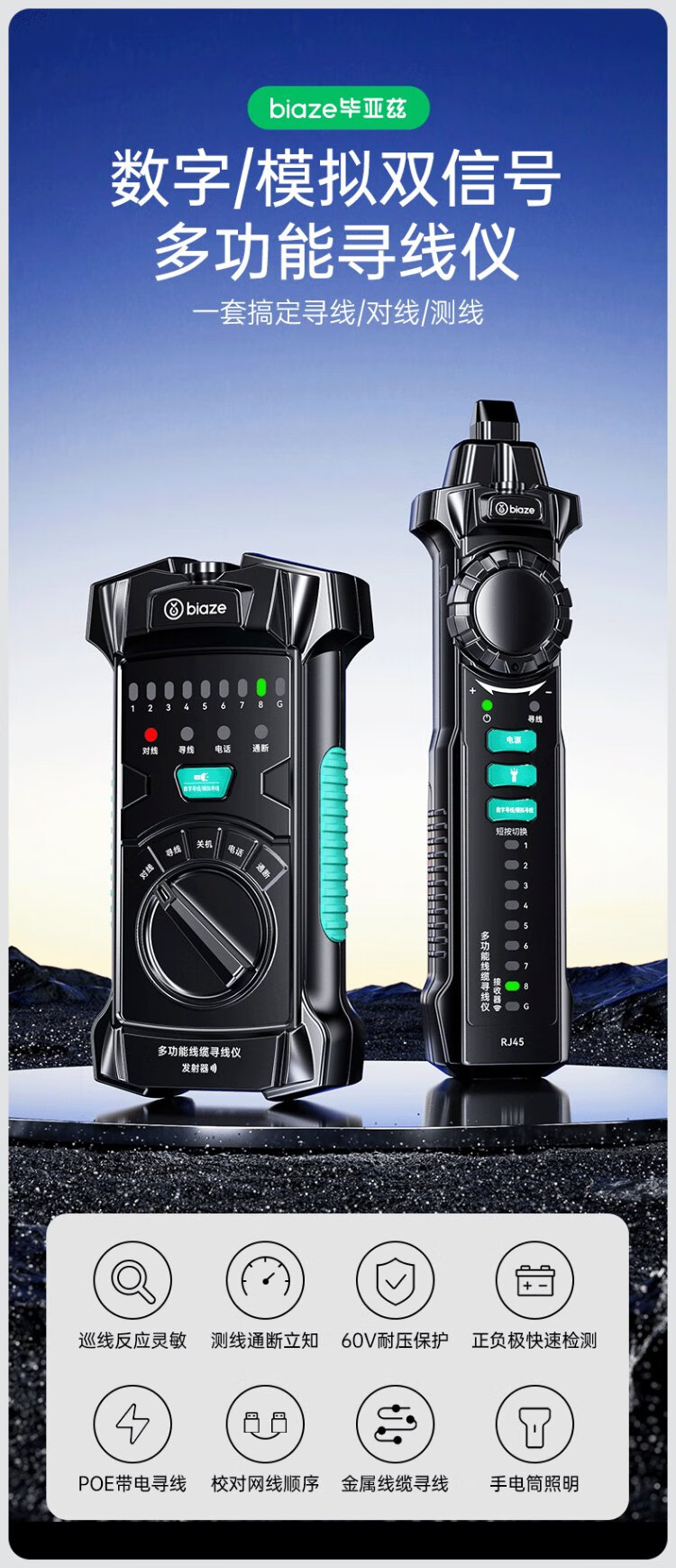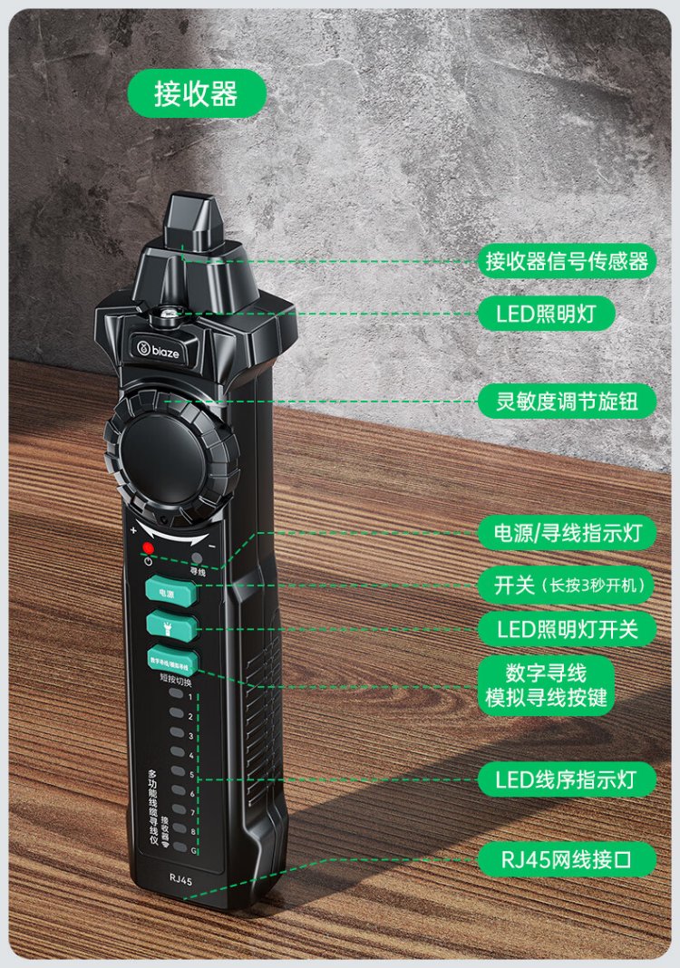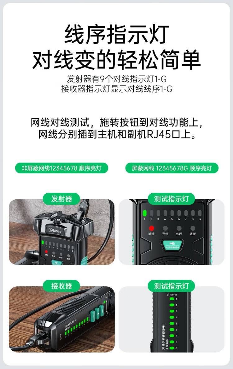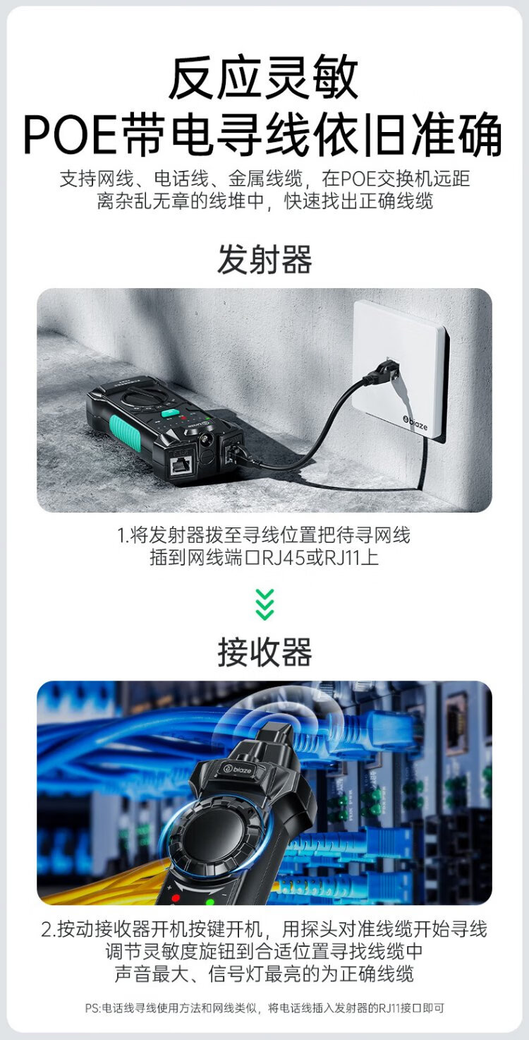 Biaz Network Line Finder Multifunctional Telephone Network Line Tester 60V Withstand Voltage/POE Line Hunting Set Anti-interference Switch Line Hunting