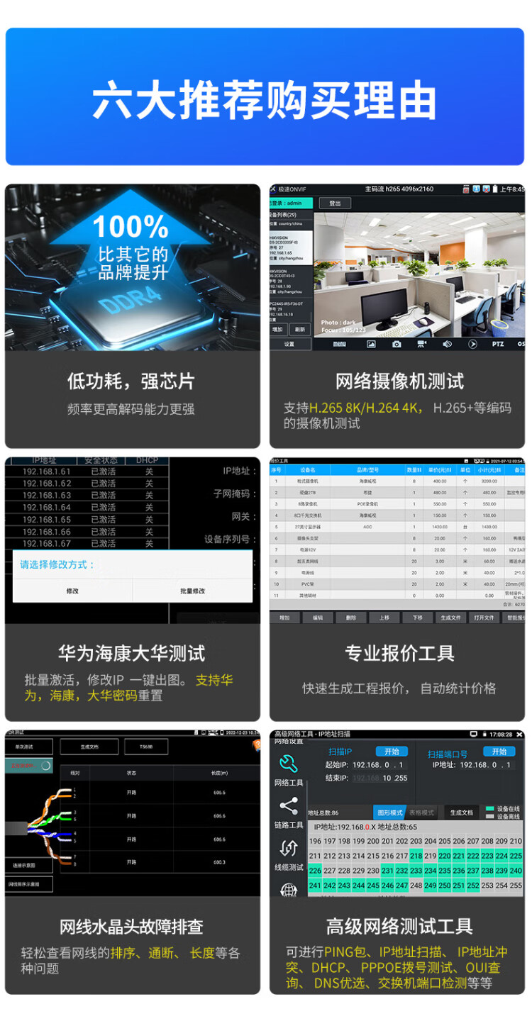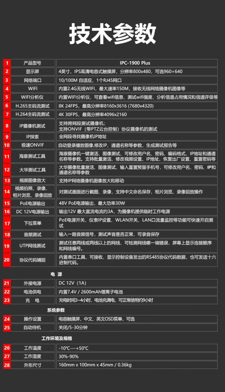 Netcom Engineering Bao 4-Zoll-8K-Videoüberwachungs-Multifunktionstester, digitaler Netzwerk-Video-Kompletttester, PoE-Stromversorgungstechnik-Ausrüstung IPC-1900plus