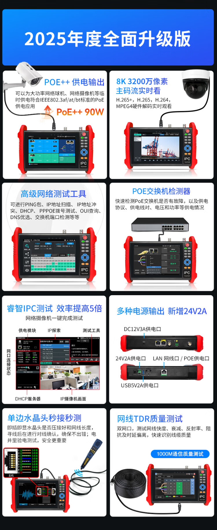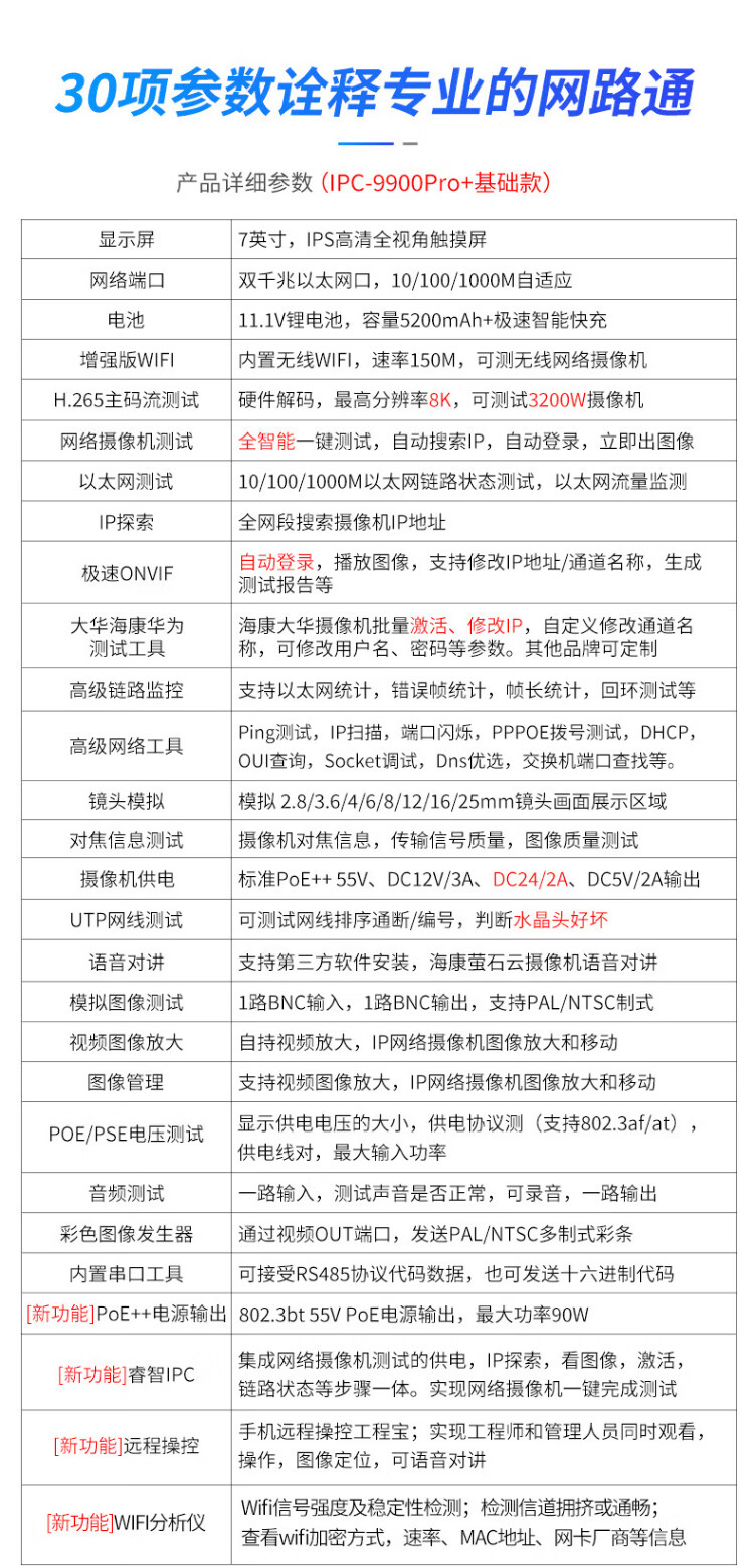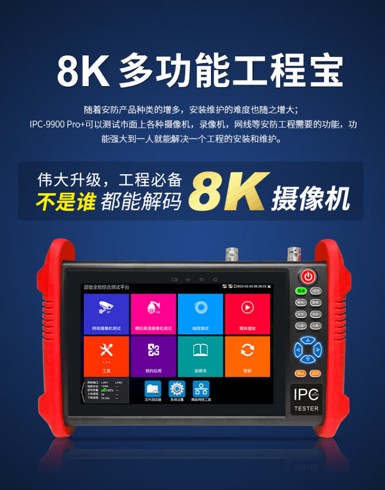 Netcom Engineering Bao 7-Zoll-High-Definition-8K-Digital-Netzwerk-Video-Kompletttester, langlebige Kamera, Remote-WiFi-Debugging-Engineering-Ausrüstung IPC-9900Pro+