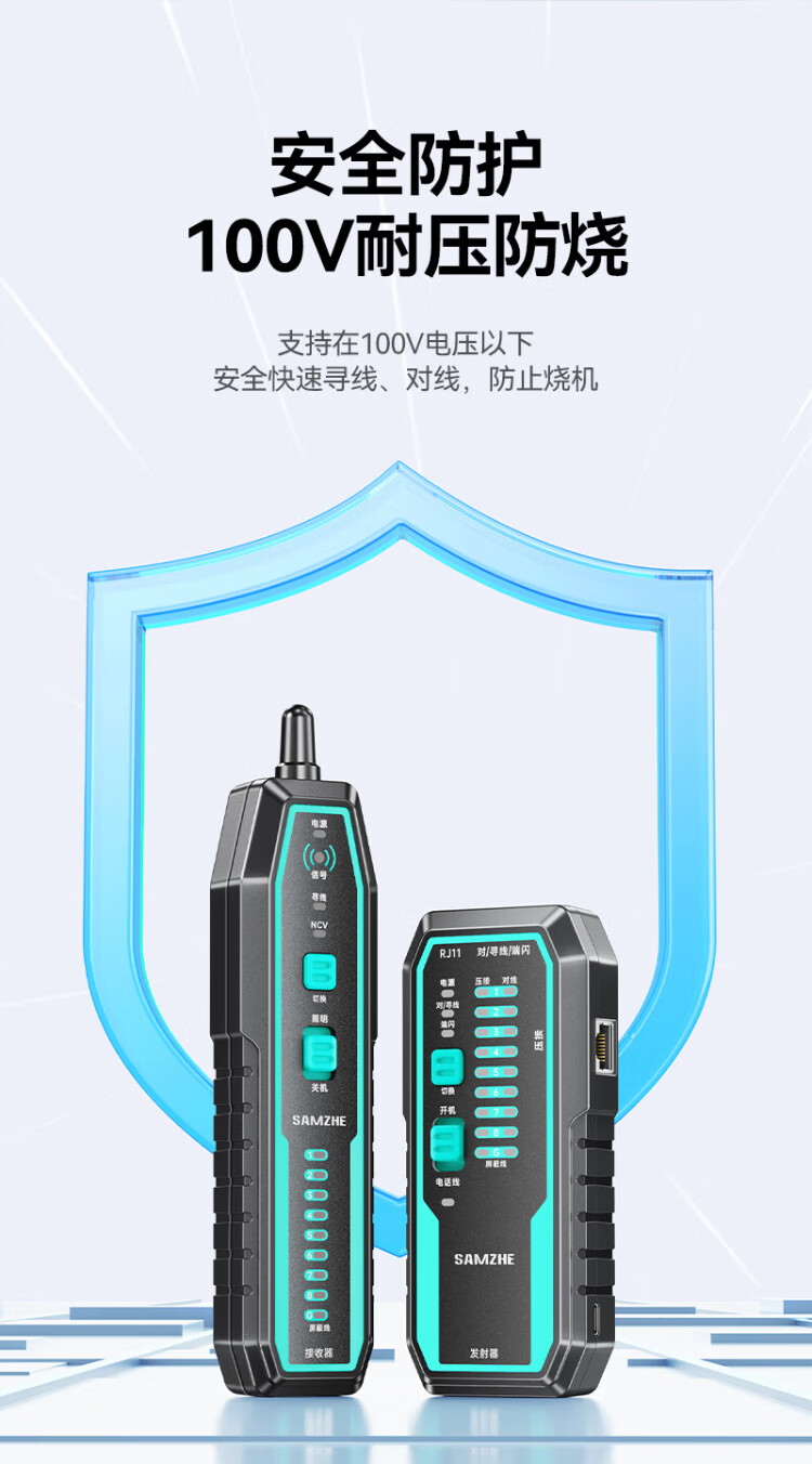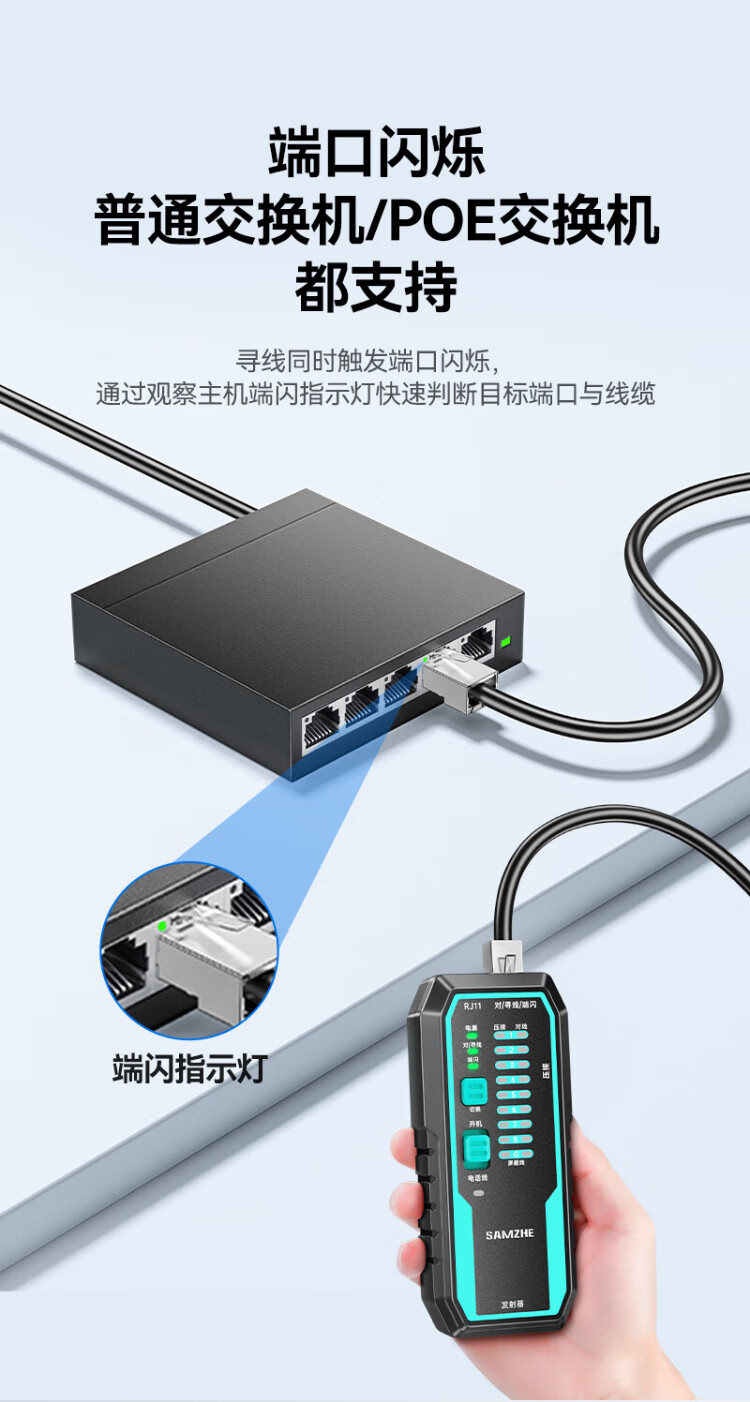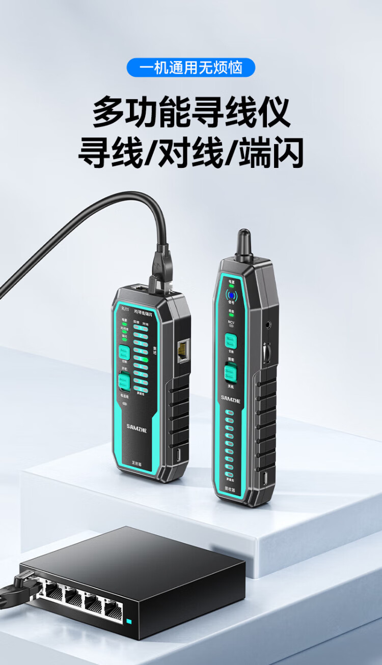 山泽网络寻线仪多功能电话网线测线巡线仪POE交换机100V耐压寻线器抗干扰端口闪烁NCV电压探测SZ-D368