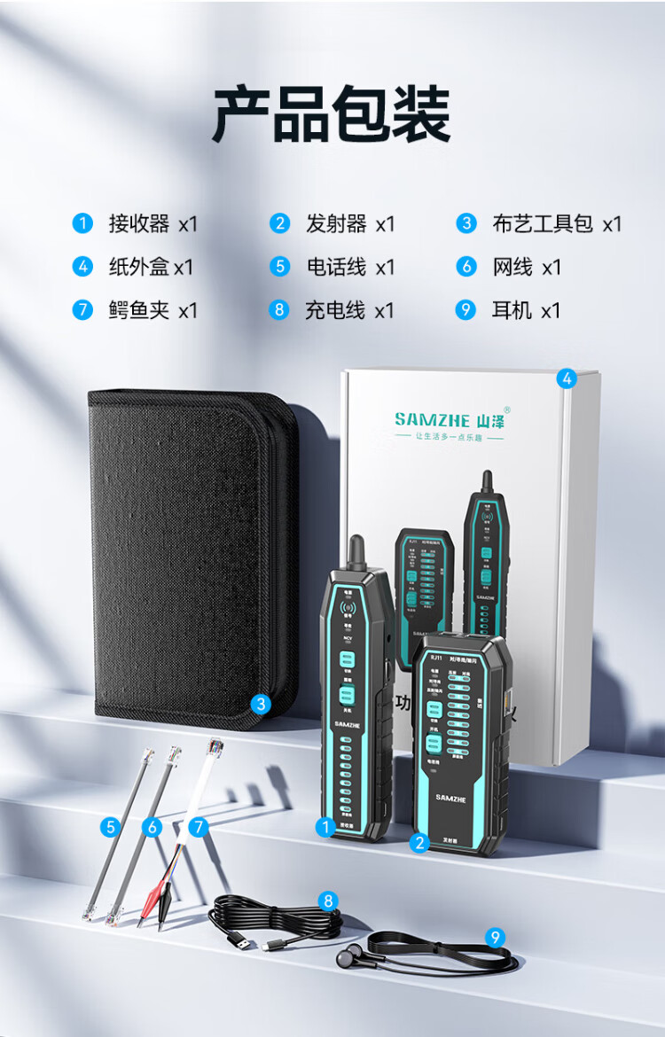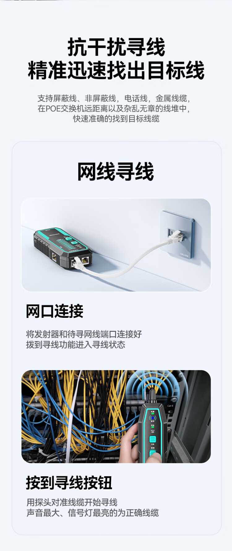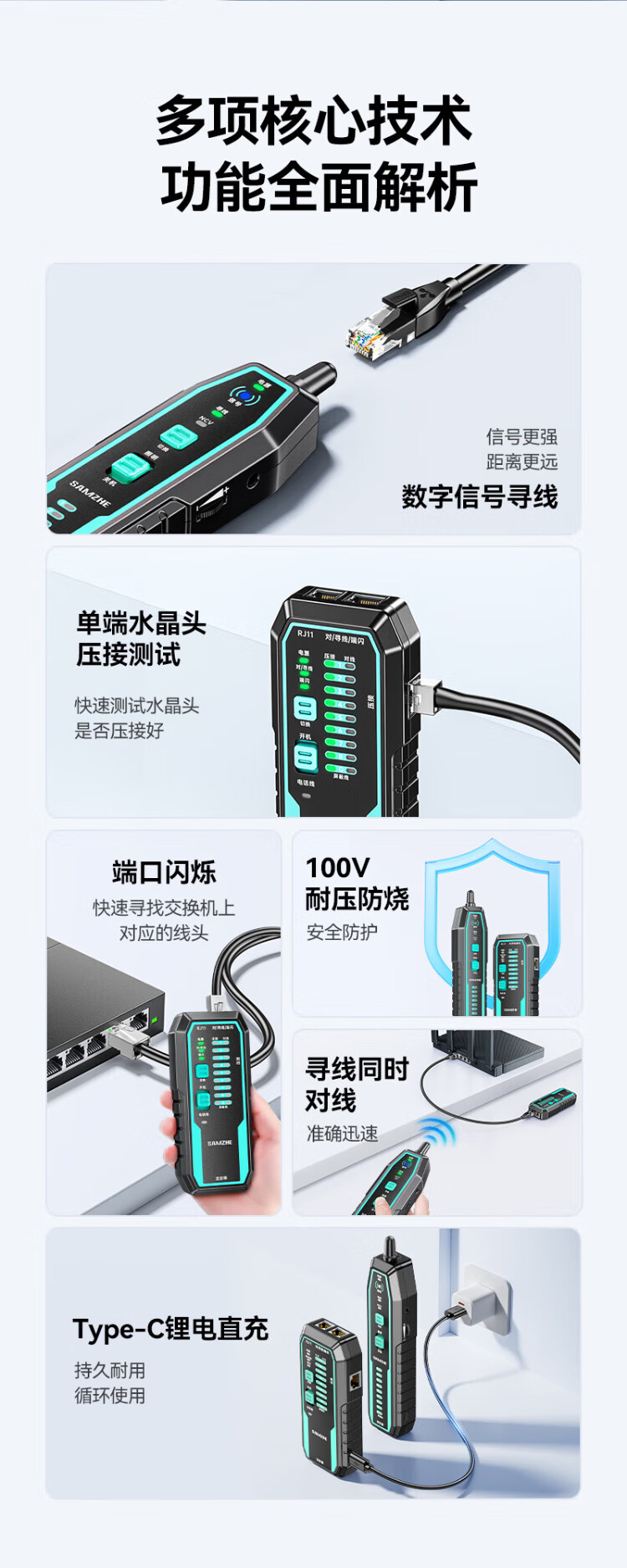山泽网络寻线仪多功能电话网线测线巡线仪POE交换机100V耐压寻线器抗干扰端口闪烁NCV电压探测SZ-D368