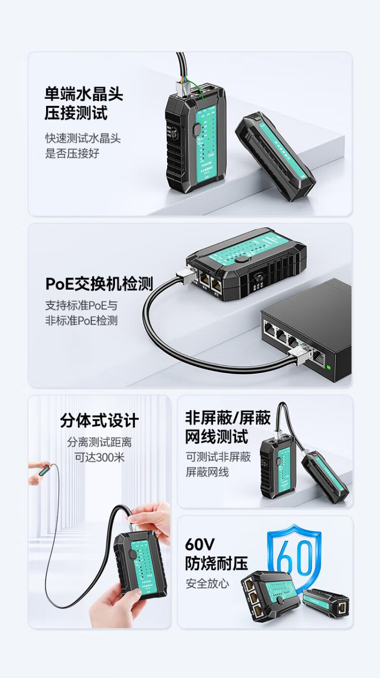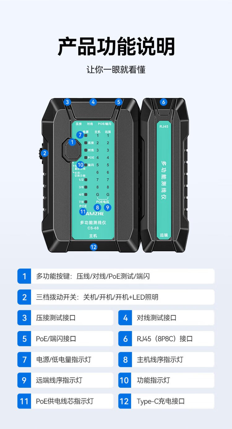 Тестер сетевых кабелей Shanze Многофункциональный тестер сетевых кабелей/телефонных кабелей Сетевая кристаллическая головка Испытательная техника с одной головкой/Бытовой интеллектуальный выключатель обнаружения сигналов CS-68