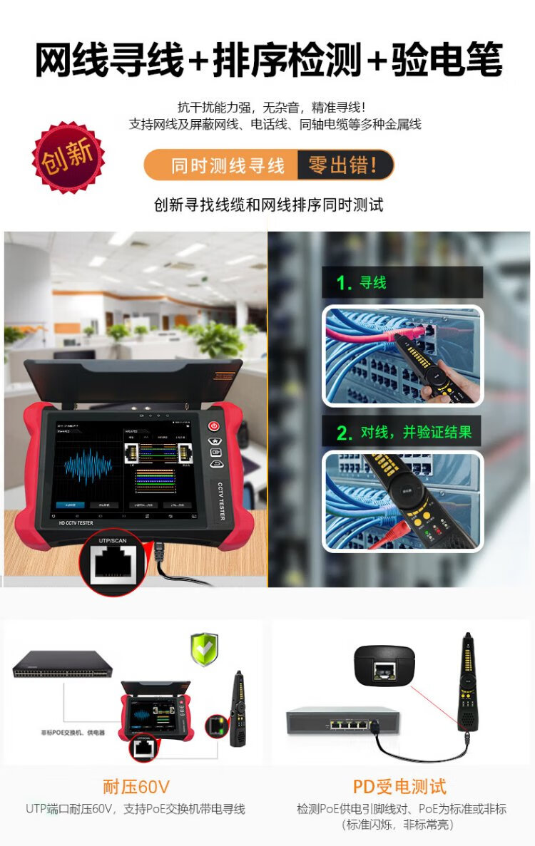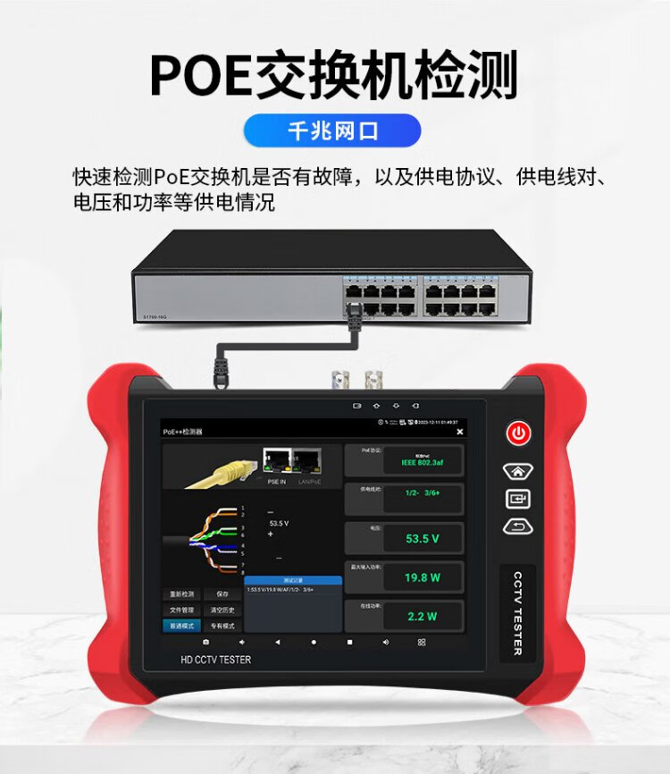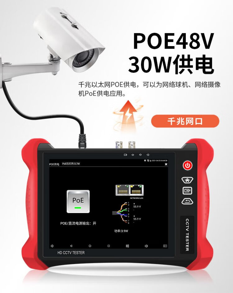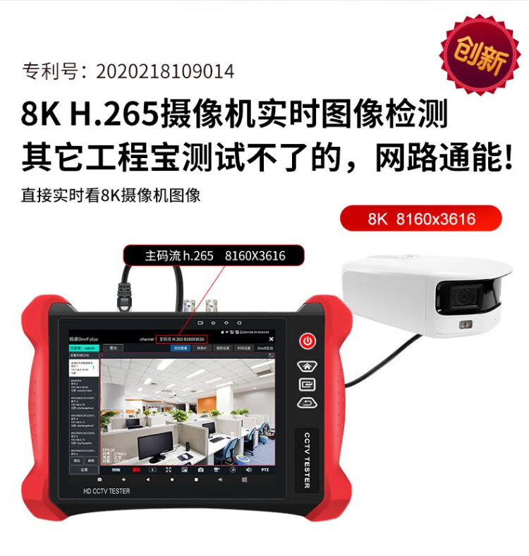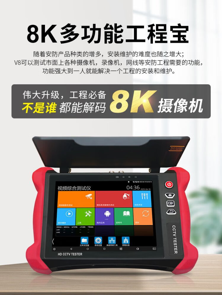Nettong Engineering Bao 8-Zoll-Multifunktions-Digital-Netzwerk-Videotester Videoüberwachung WiFi-Erkennungskamera PoE-Stromversorgungsleitungsinspektion Elektrische Lichtfunktion Rotlicht integriert V8S