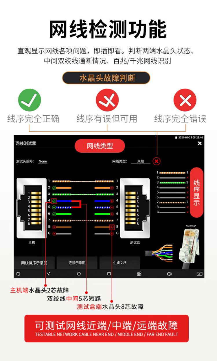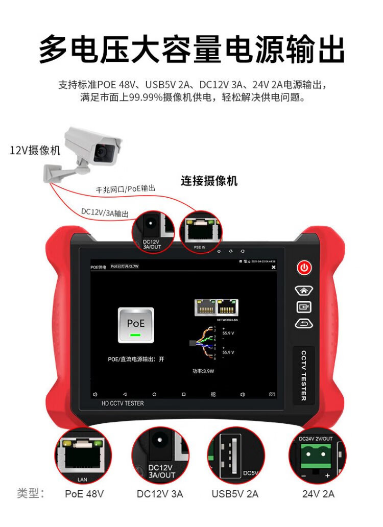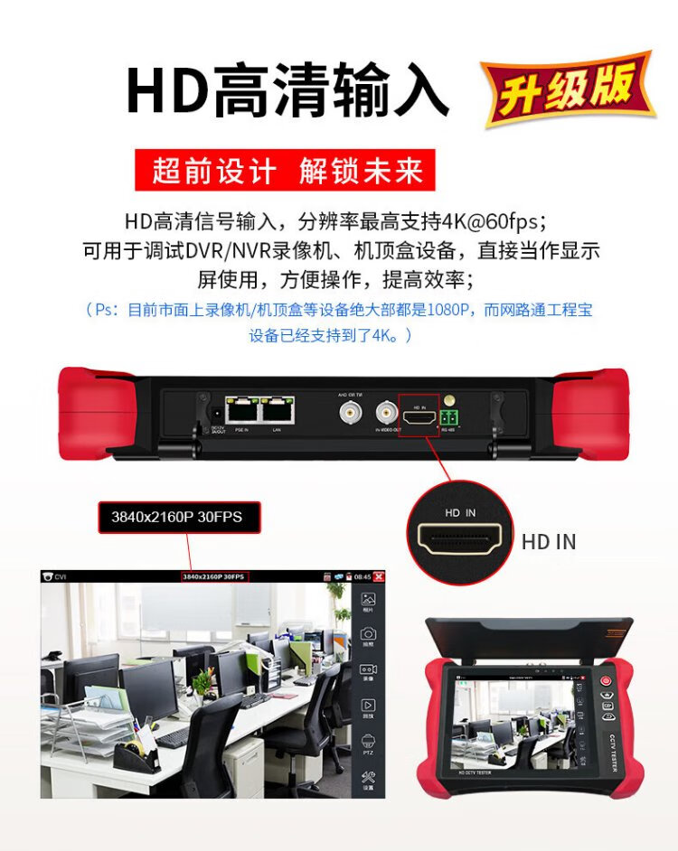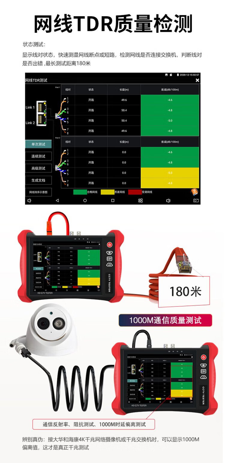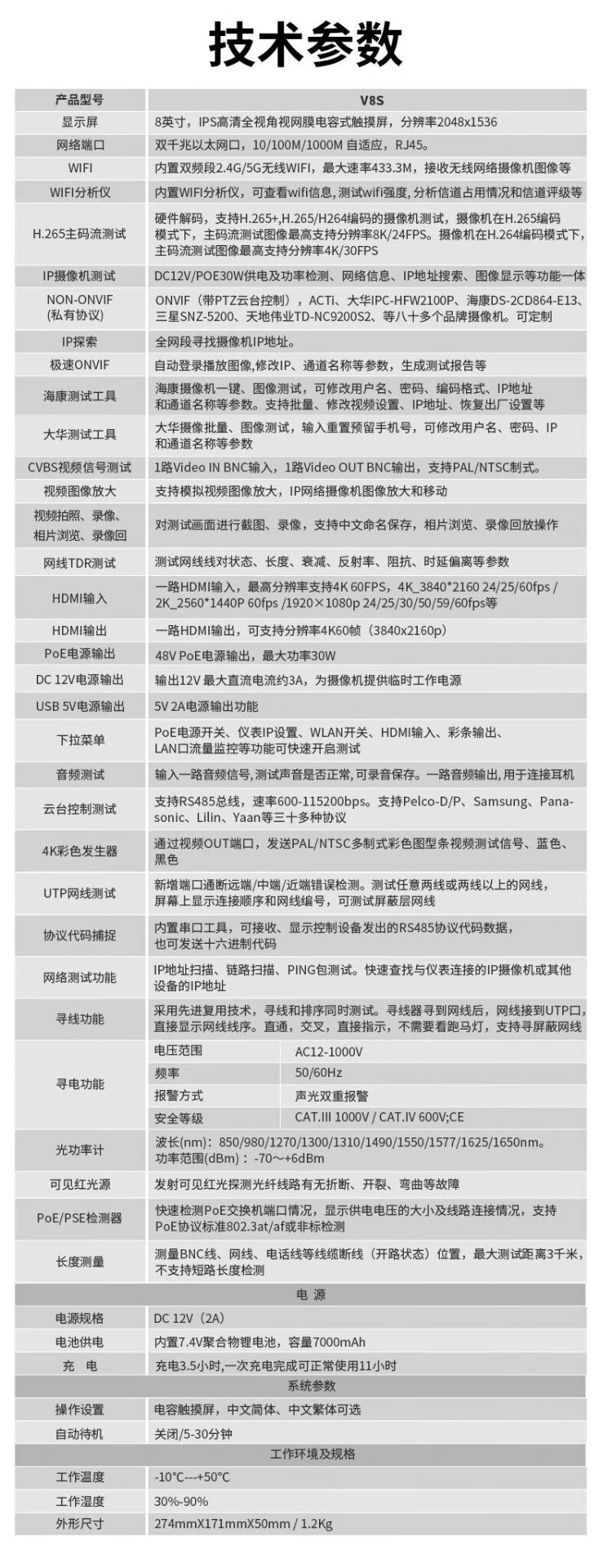 Nettong Engineering Bao 8-Zoll-Multifunktions-Digital-Netzwerk-Videotester Videoüberwachung WiFi-Erkennungskamera PoE-Stromversorgungsleitungsinspektion Elektrische Lichtfunktion Rotlicht integriert V8S