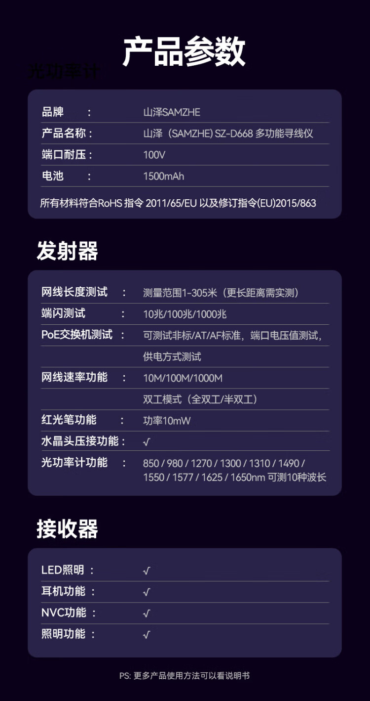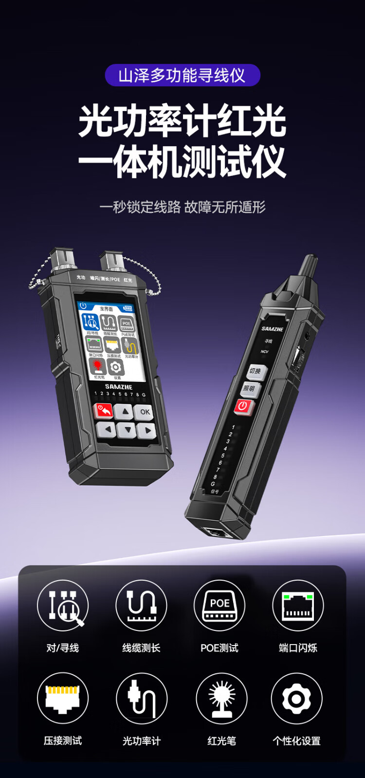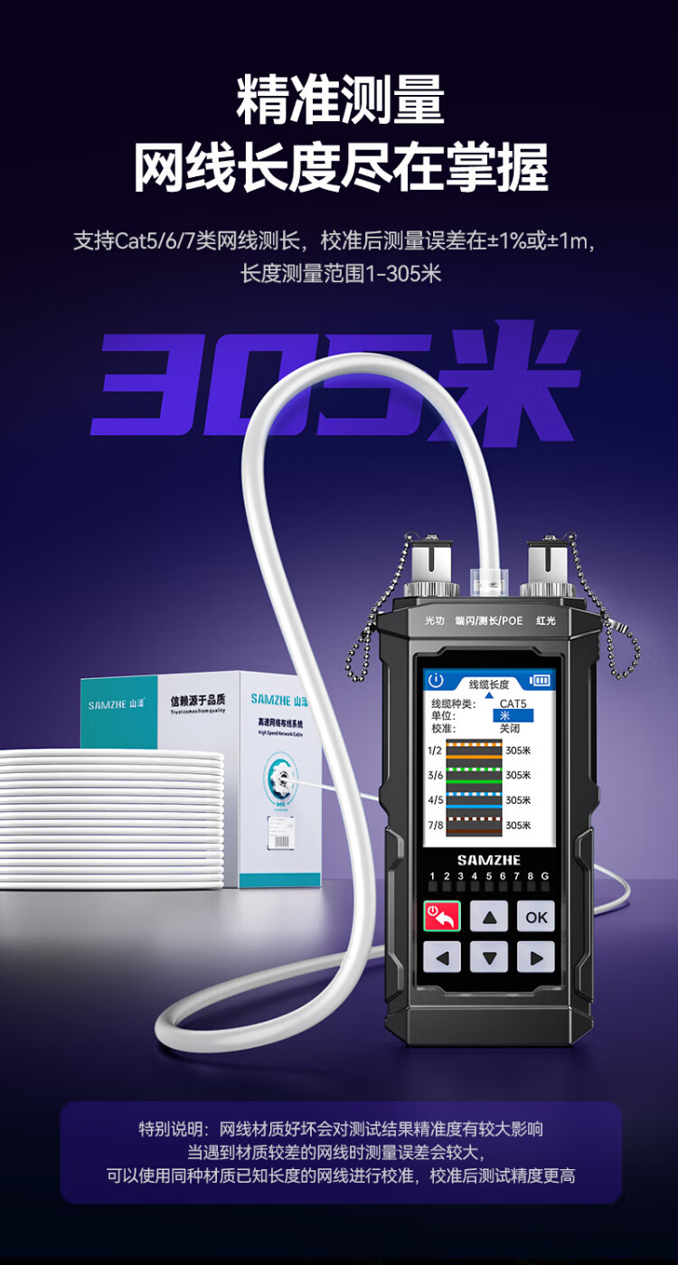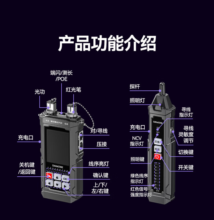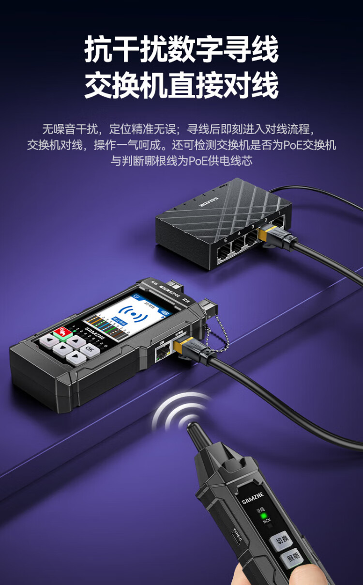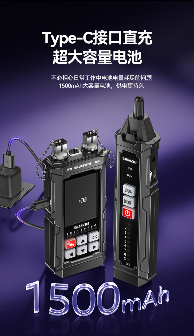 Shanze network line finder optical power meter red light all-in-one line tracker fiber tester port flashing crystal head crimping anti-interference 100V withstand voltage charging model SZ-D668