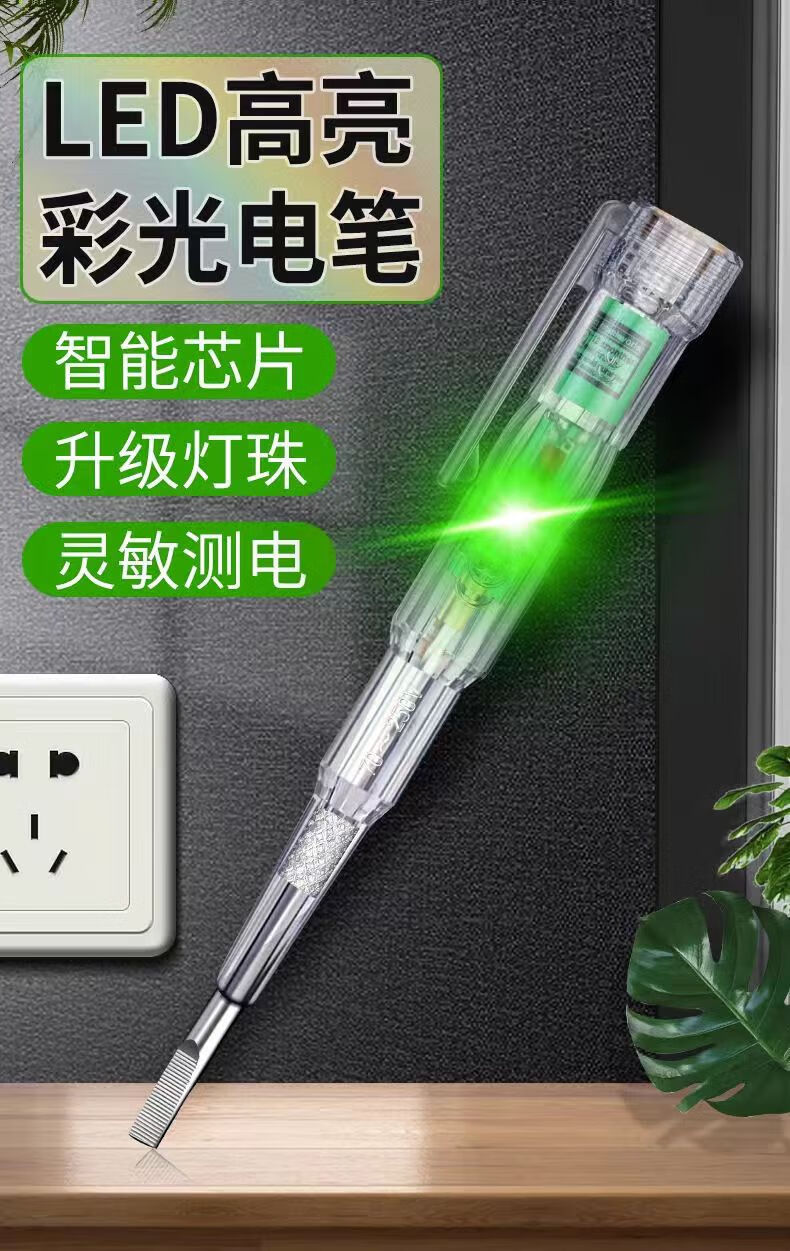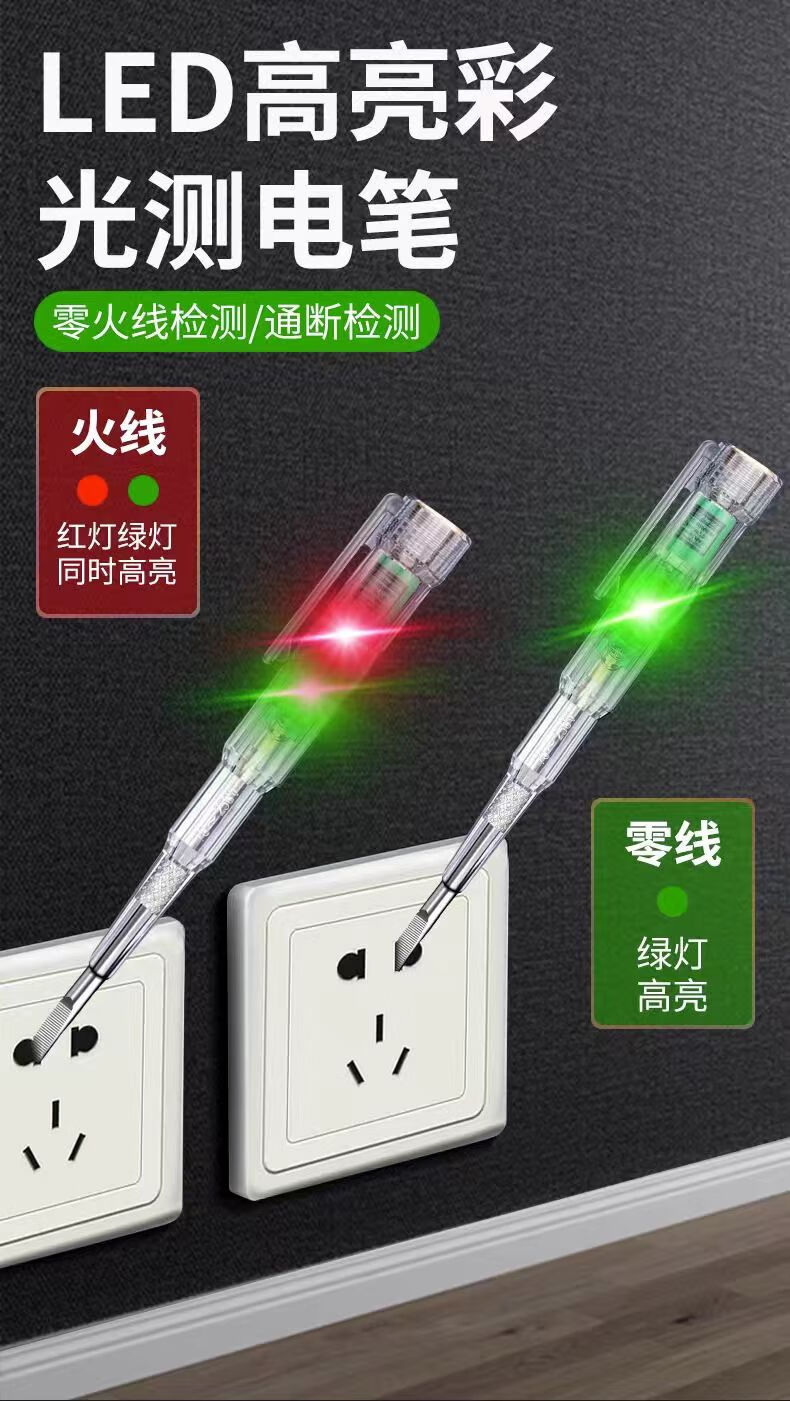 Jingdong Logistics High-brightness color light electrician electric test pen special induction breakpoint household broken live wire intelligent double lamp test pen High color light double lamp electric test pen + 3 spare batteries