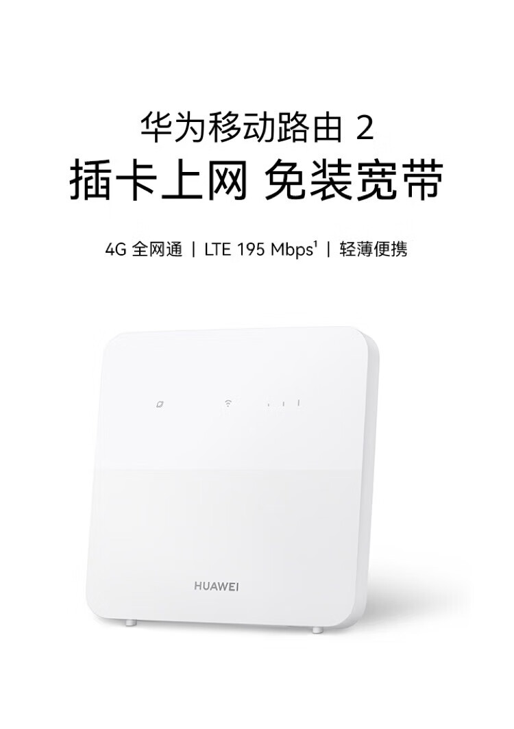华为移动路由2 天际通版 赠5GB流量 无线全网通 百兆网口插卡路由 随身移动WiFi