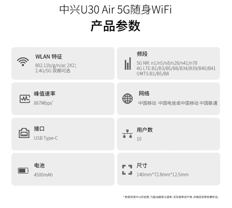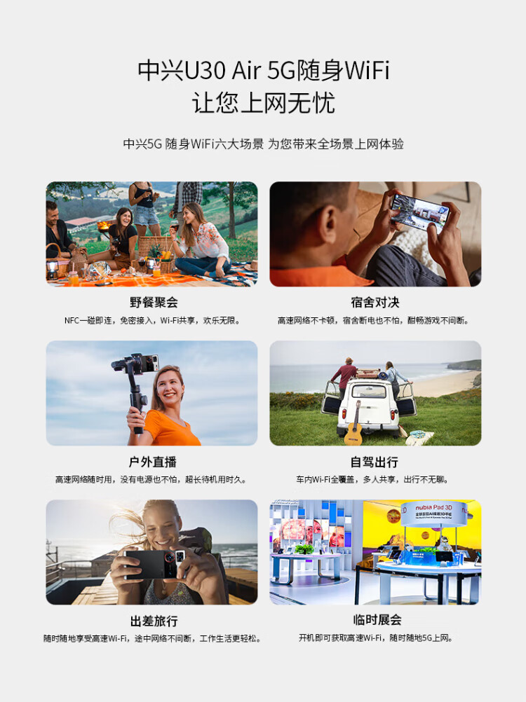 ZTE (ZTE) U30 Air 5G Card-free Mobile WiFi Wireless Network Card Portable Hotspot 5g Router Unlimited Laptop Universal Traffic Car Card Tray 2025