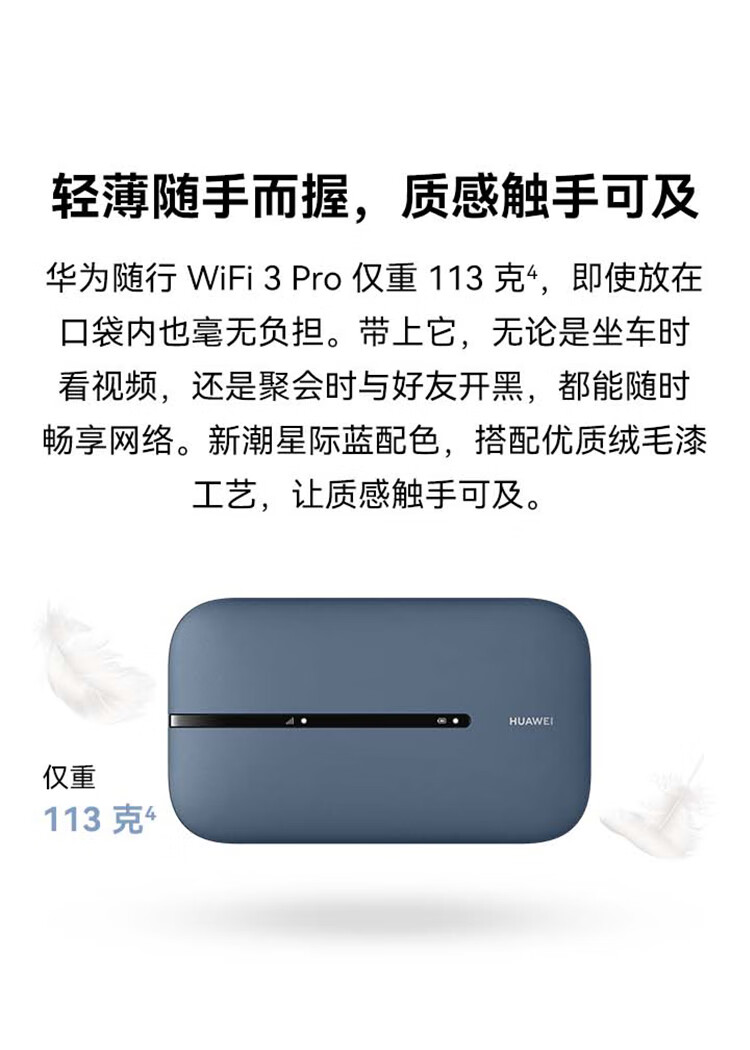 Huawei portable wifi3pro mobile wireless wifi card-free accompanying 4g portable wireless network car non-wifi6 three-net national unlimited traffic 2025 model 5g AX15B accompanying WiFi3 Pro blue