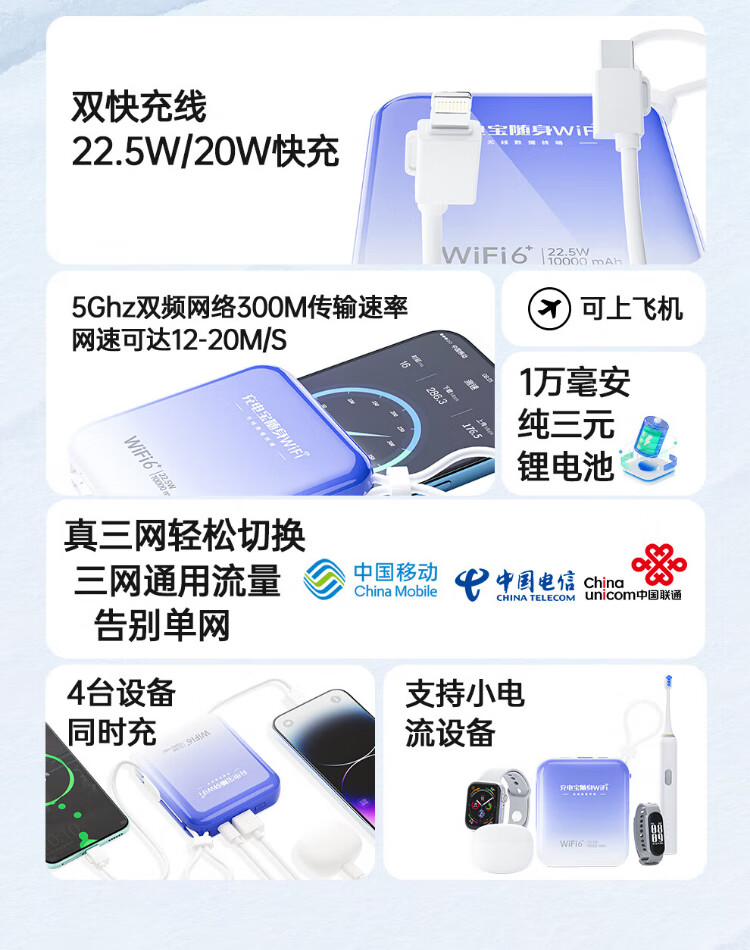 Xiaodingxun mobile portable wifi 5ghz unlimited traffic 2025 model charging wifi two-in-one wireless network portable wifi card-free convenient three-network communication 22.5W dual-line fast charging 1W mAh | ZTE microchip-Xunwu Purple Network speed up to 150M No speed limit or false standard Support 32 people sharing
