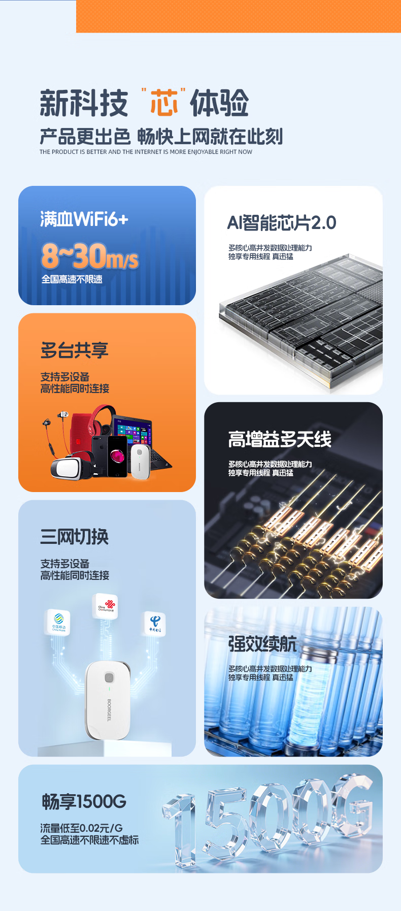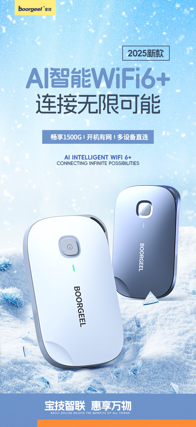 宝技随身wifi三网通用免插卡无线wifi6车载4G路由器随身便携无限制移动联通电信全国通用2025款 【三网通-白色】送1500G流量+全国通用