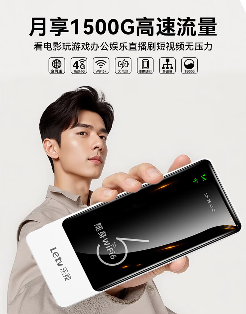 LeTV tragbares WLAN-Drahtlosnetzwerk, dreifaches Netzwerk, kartenfrei, mobiles WLAN6, tragbare Netzwerkkarte, Hochgeschwindigkeits-4G-Funk-WLAN, nationaler universeller Verkehr, 2025 Flaggschiff-Powerbank-Modell || 8000 mAh + Langzeit-Akkulaufzeit von 72 Stunden, keine Geschwindigkeitsbegrenzung, kein falscher Standard, genießen Sie 1500 G Datenverkehr pro Monat