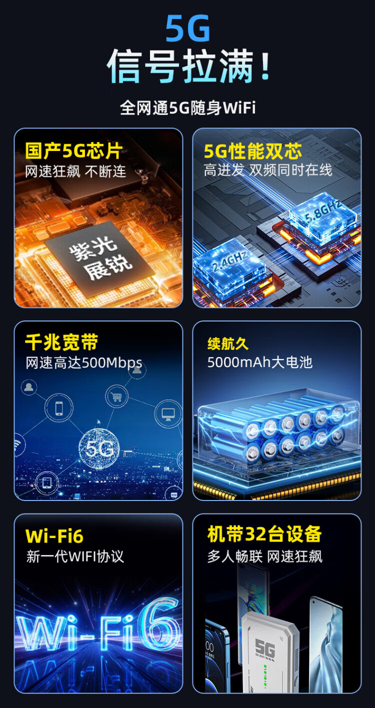 Zhichuang's current 5g portable wifi6 mobile wireless portable card-free Internet access Gigabit dual-band 2025 unlimited traffic multi-Netcom router car notebook universal official authentic metal gray dual-band WiFi6+ bursting high-frequency performance