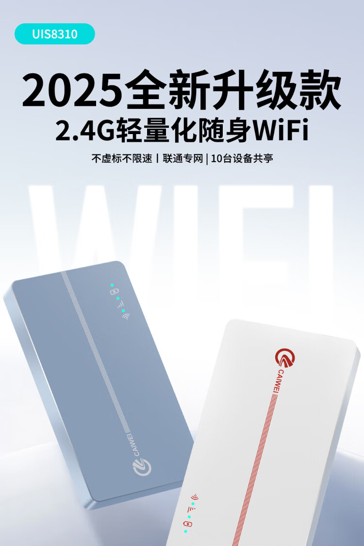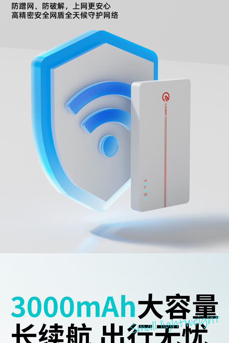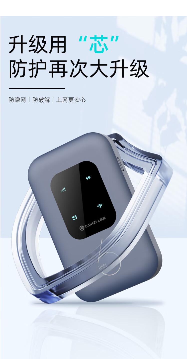 Caiwei 2025 new portable wifi6 4G card-free China Unicom high-speed traffic portable car mobile wireless network card router no monthly rent subscription ready use 2025 model supports three network cards fog blue