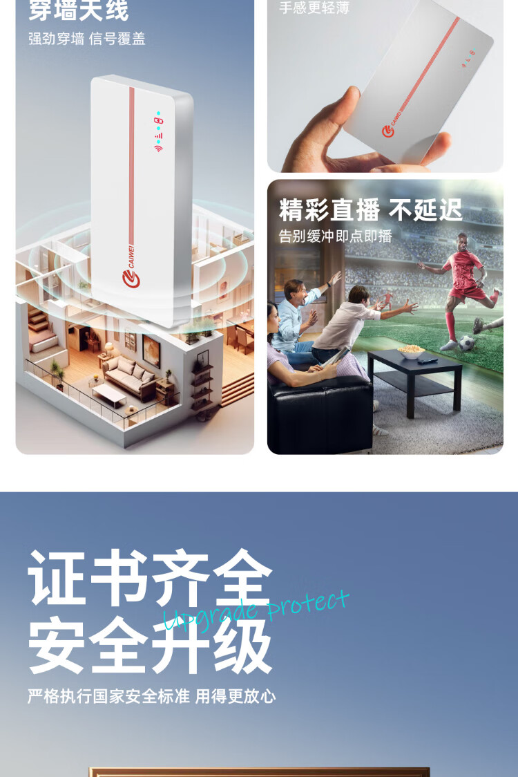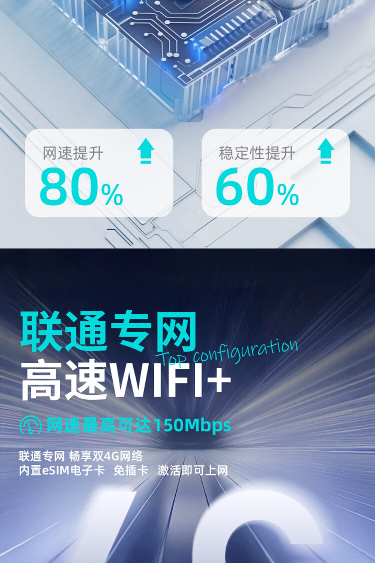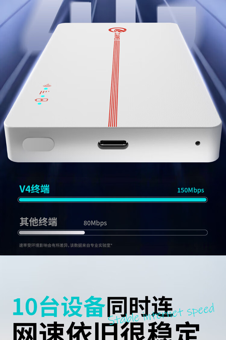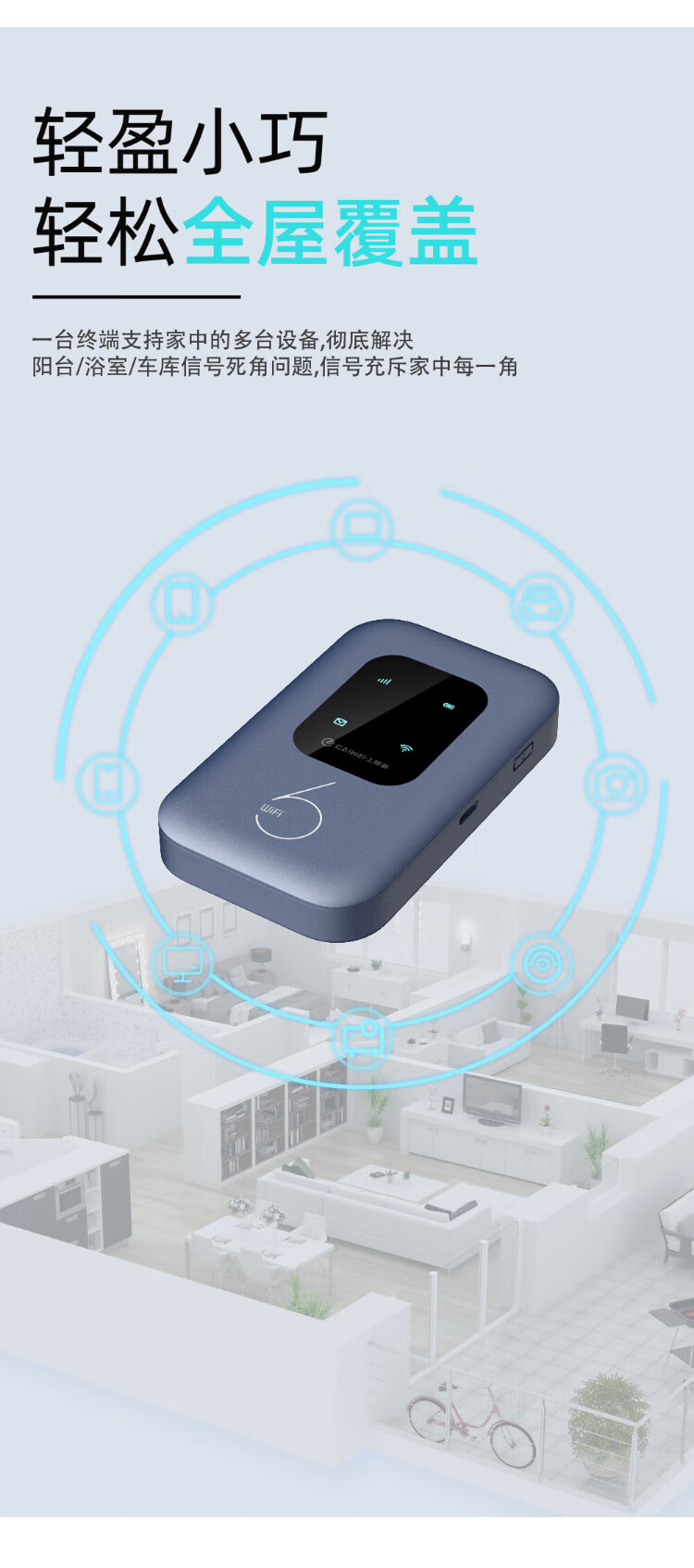 Caiwei 2025 new portable wifi6 4G card-free China Unicom high-speed traffic portable car mobile wireless network card router no monthly rent subscription ready use 2025 model supports three network cards fog blue