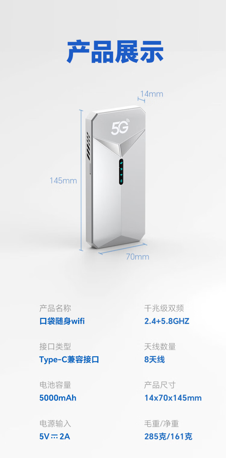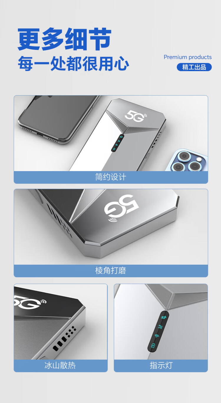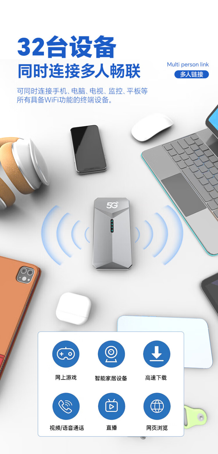 牧歌真5g随身wifi6千兆双频免插卡便携式cpe路由器适用车载上网卡移动联通高速流量上网宝mifi通用 【真5G尊享版】石墨灰-WiFi6网速500m/s