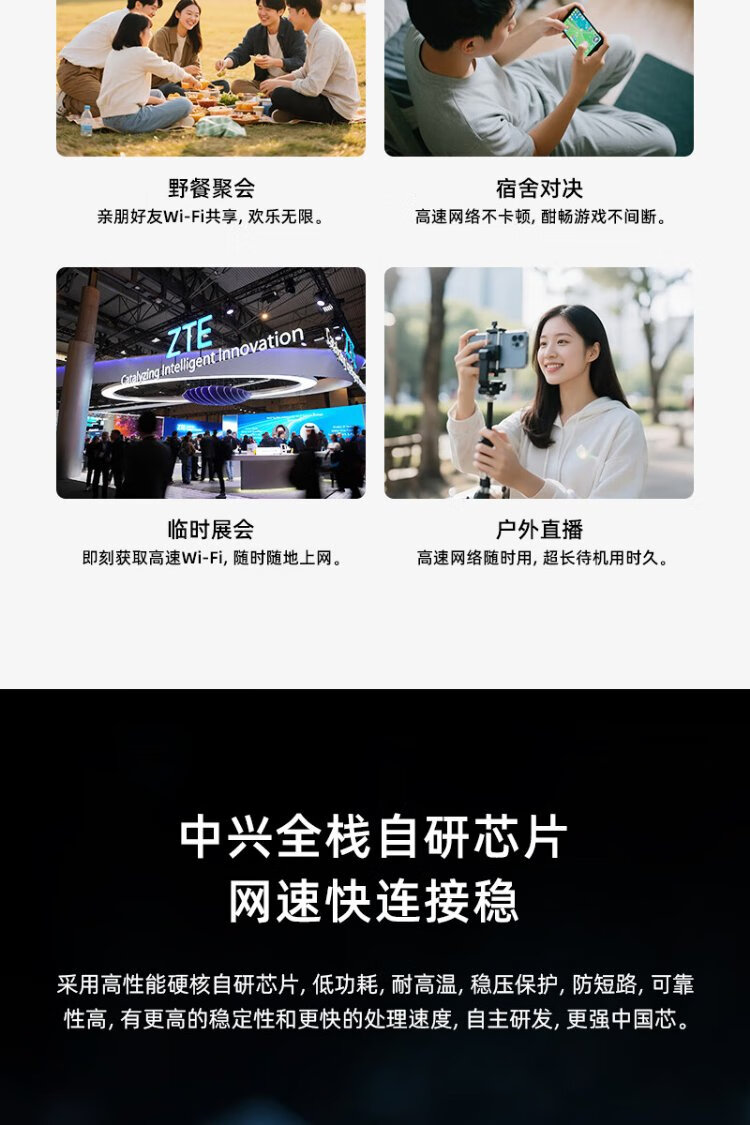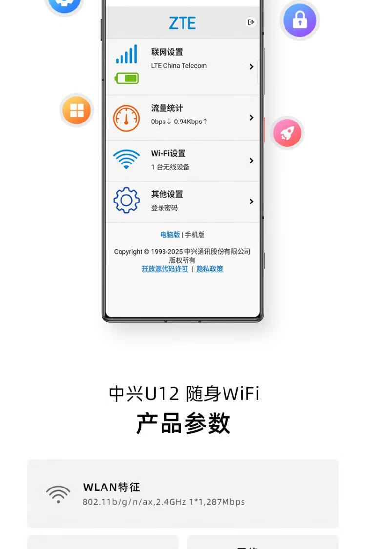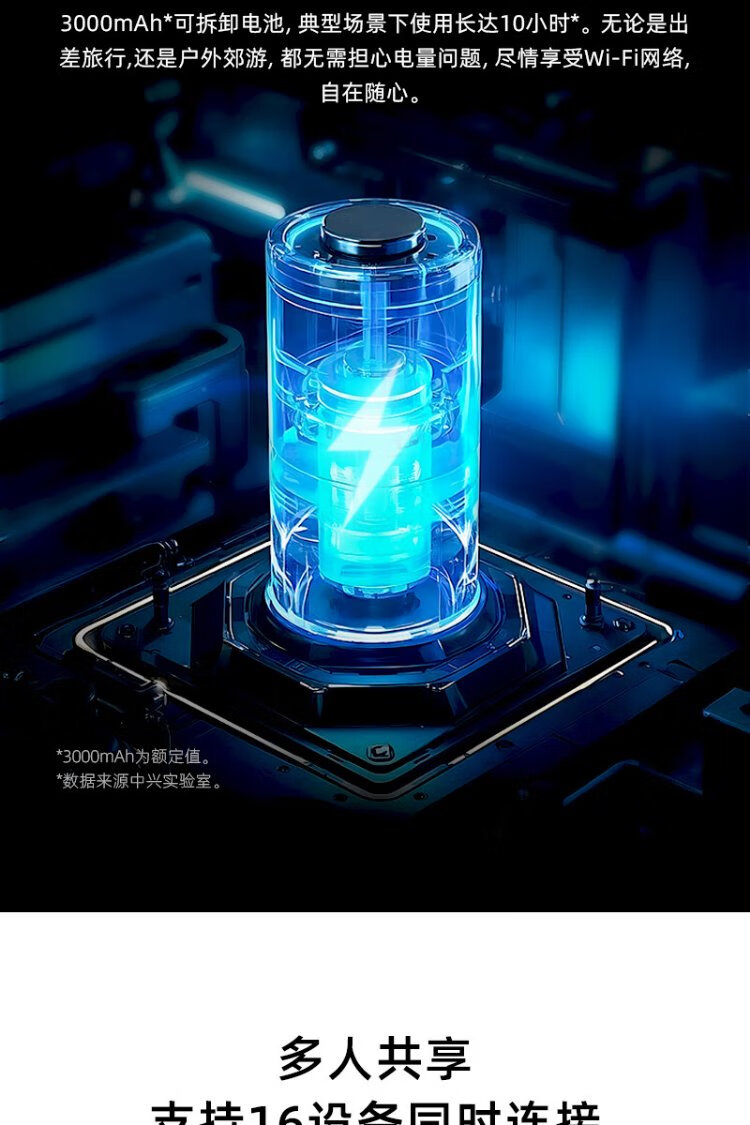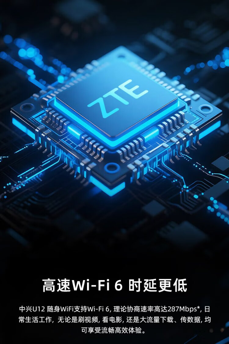 中兴U12随身wifi6【送1500G】支持5G/4G设备免插卡移动随行无线网卡热点无限全国通用流量便携2025款L 石墨黑 【WiFi6 双网切换 】顶配版+超长续航