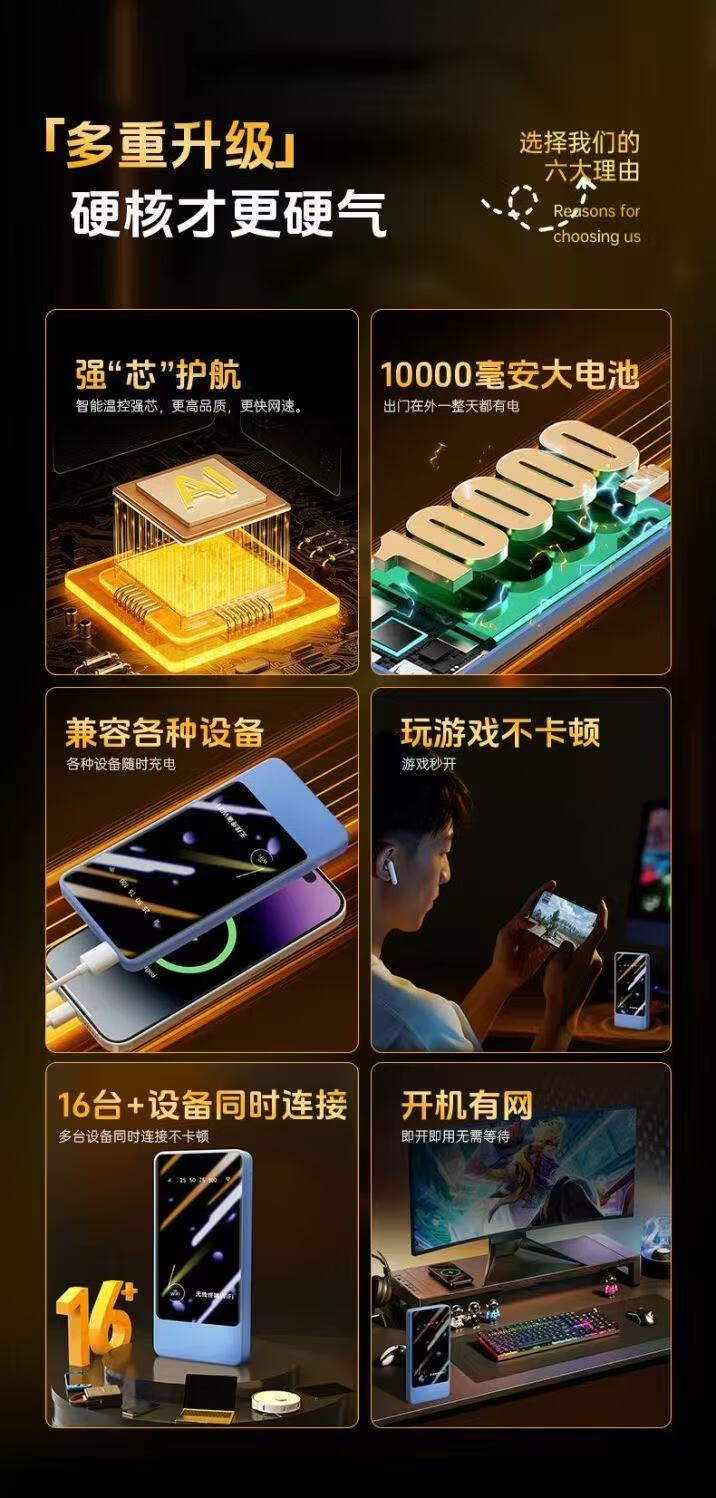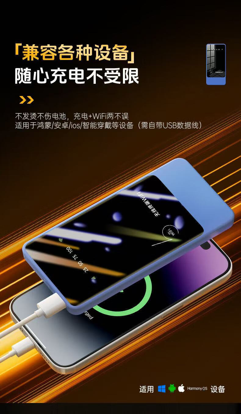 飞瑧充电宝二合一2025新款MIFI随身wifi6无线wi-fi移动wifl无限流量全国通用路由器移动联通电信5GHF 全网通帝王版10000毫安-送免费流量